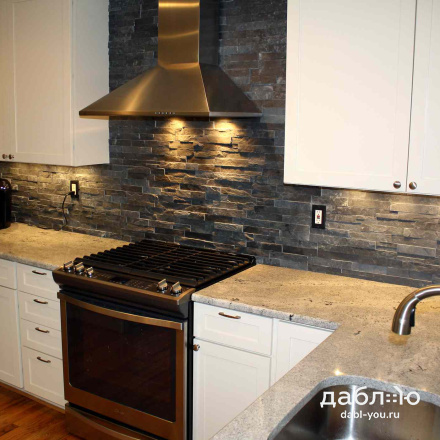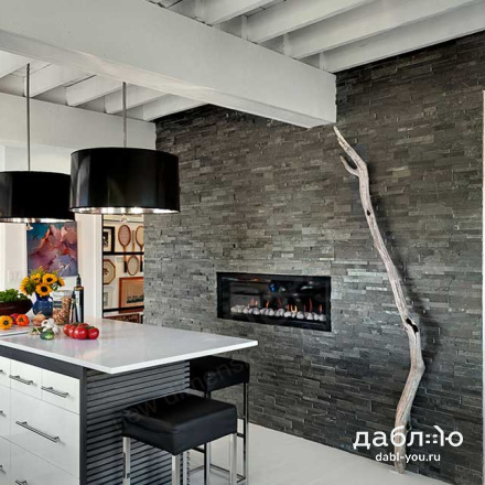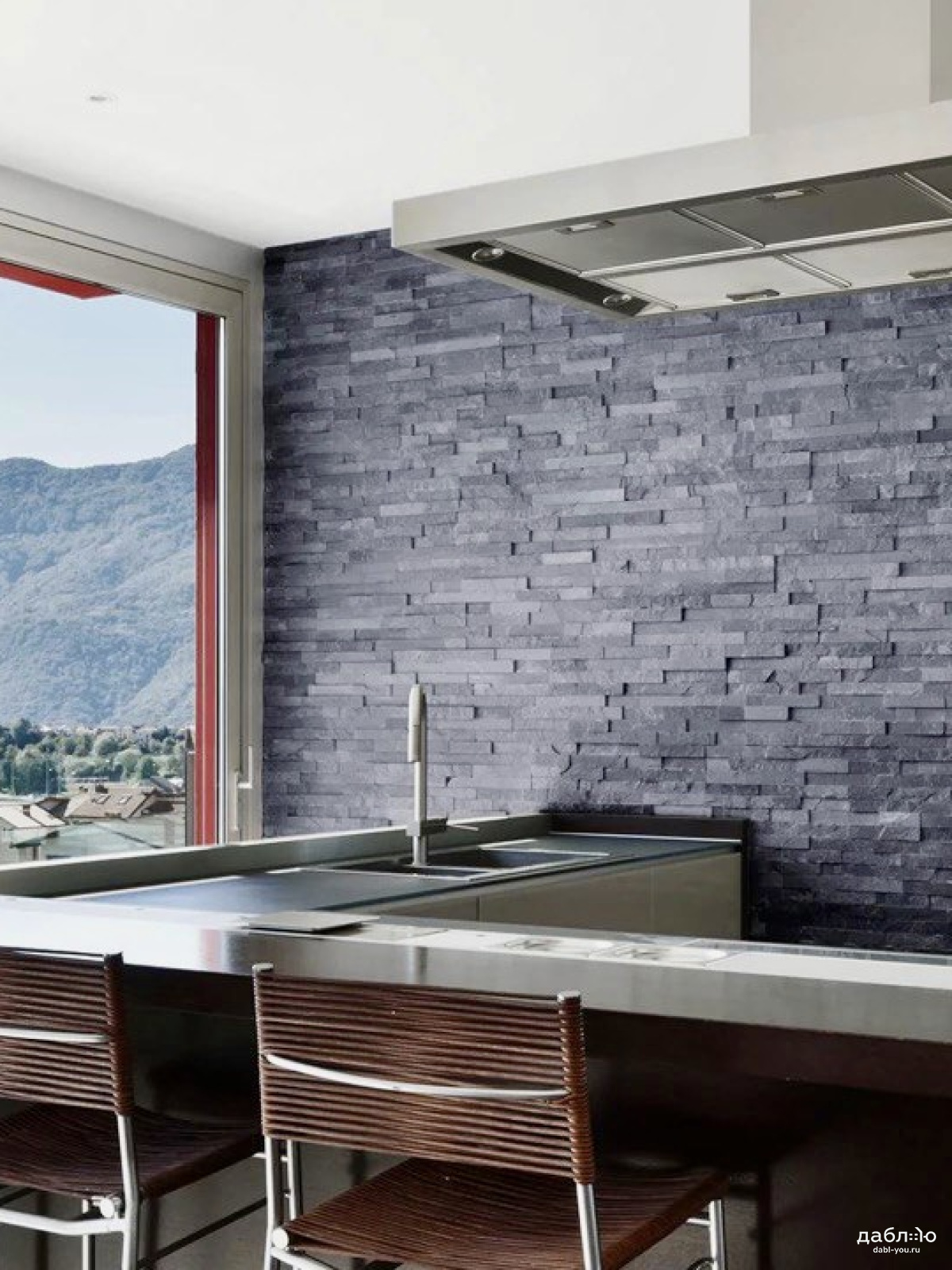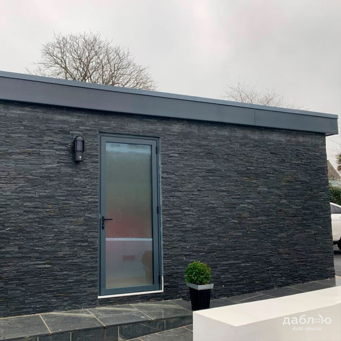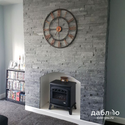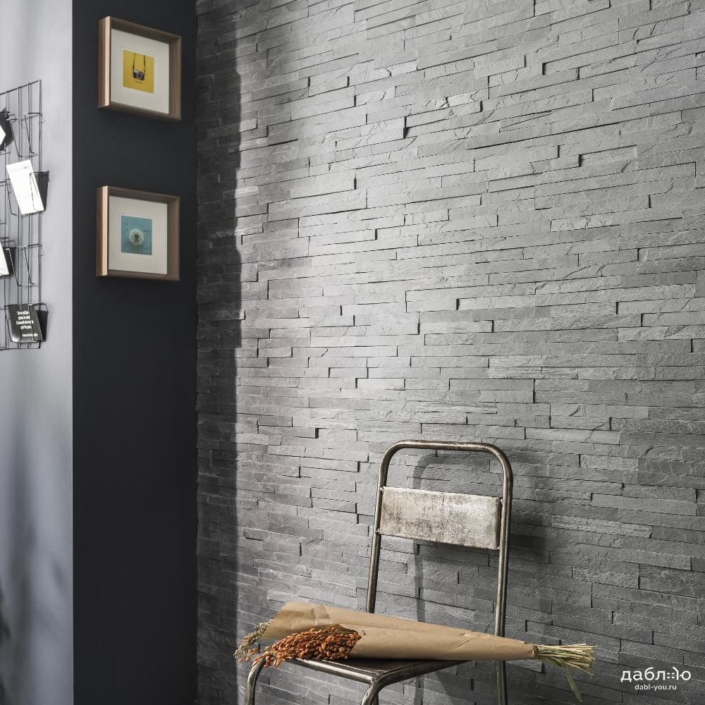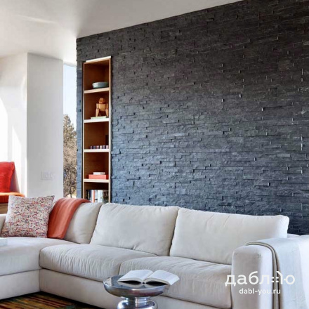 Панель из натурального камня Классик Сланец черный. Данная панель представляет собой единую плитку, состоящую из склеенных кусочков натурального камня. Благодаря неровной поверхности достигается "объем" природного материала. Эти панели представлены в различных цветах и размерах, что дает возможность подобрать материал на Ваш вкус и цвет.Длина: 600 мм