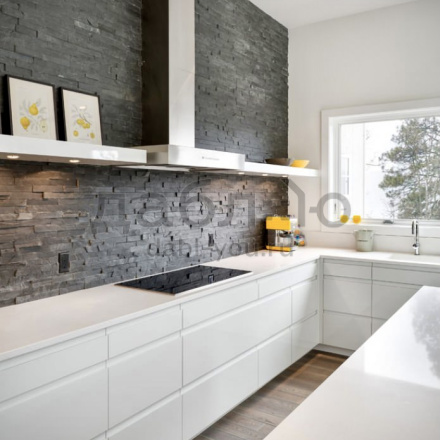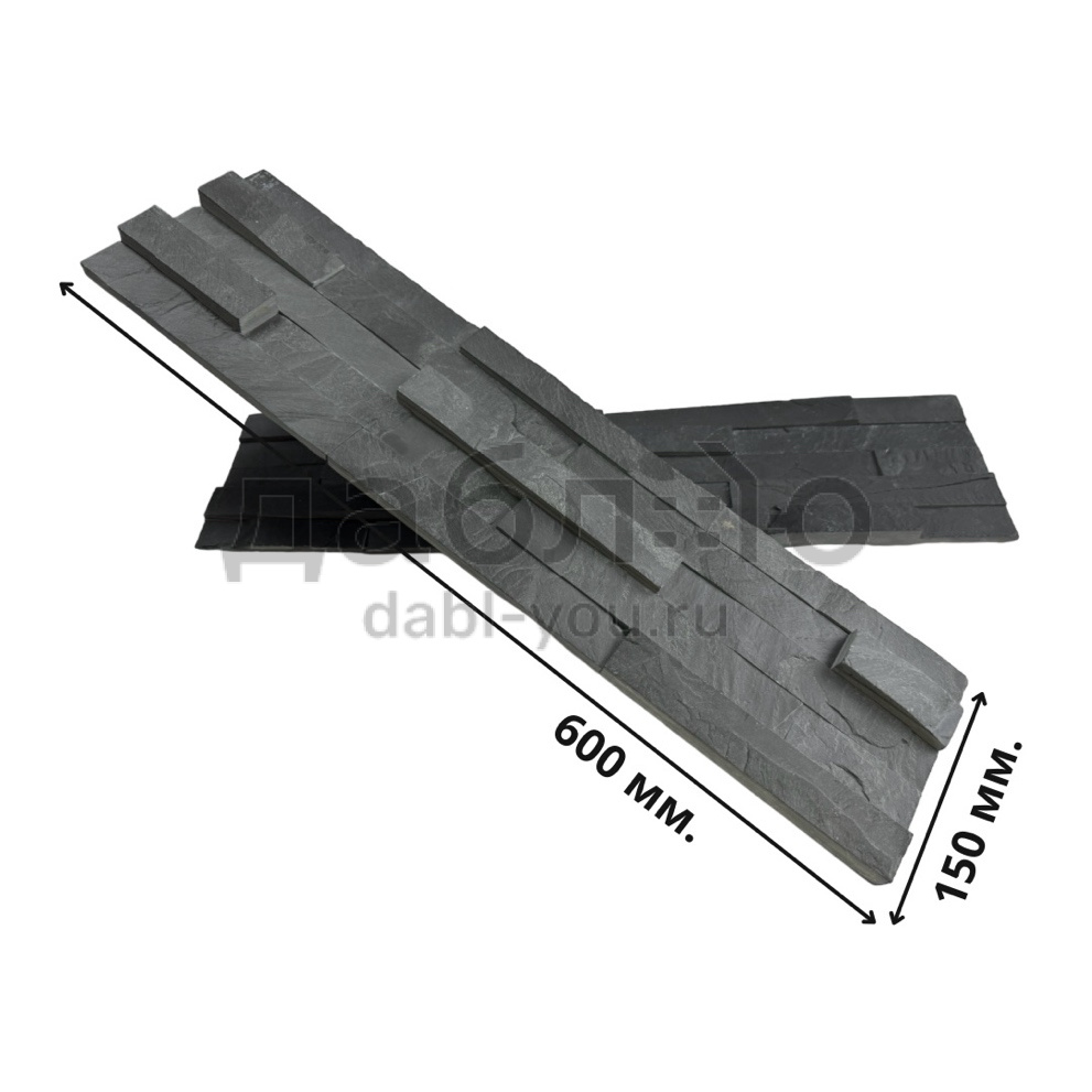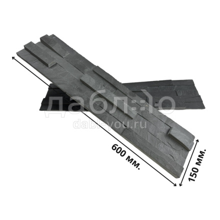 Панель из натурального камня Классик Сланец черный. Данная панель представляет собой единую плитку, состоящую из склеенных кусочков натурального камня. Благодаря неровной поверхности достигается "объем" природного материала. Эти панели представлены в различных цветах и размерах, что дает возможность подобрать материал на Ваш вкус и цвет.- Длина: 600 мм
