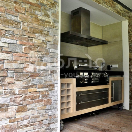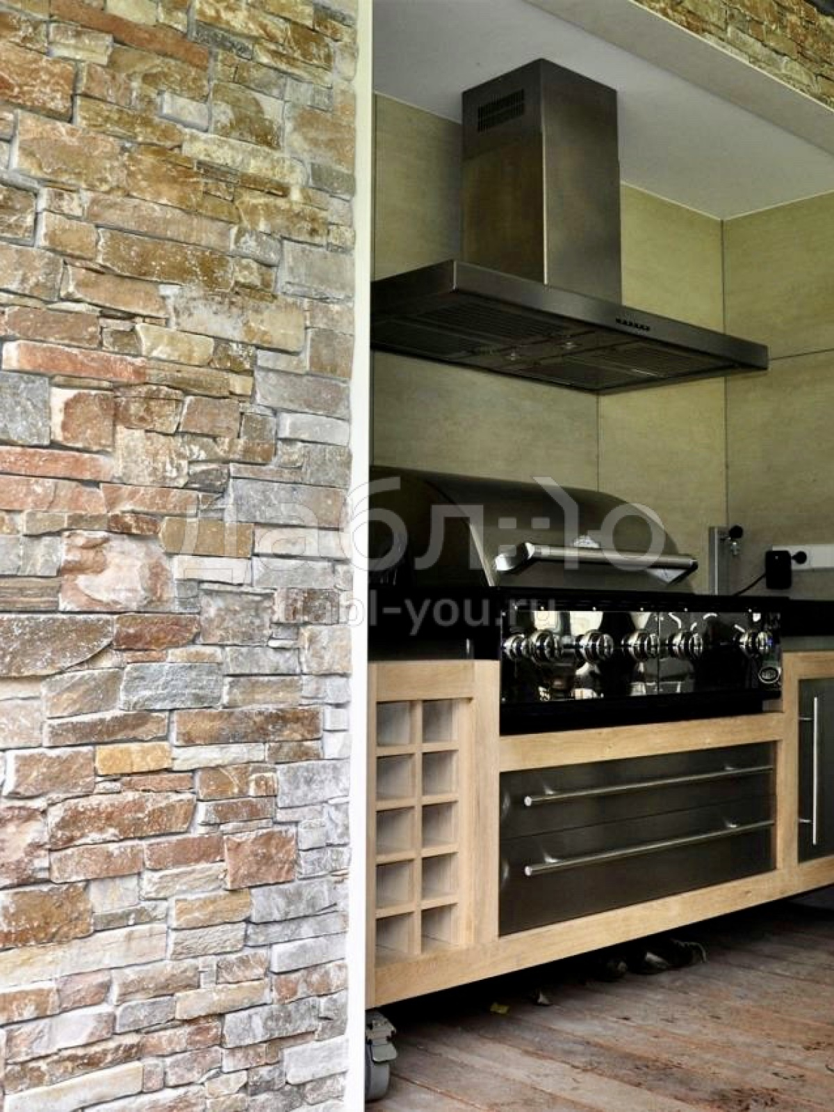 Панель из натурального камня Грубый камень Кварцит бежевый. Данная панель представляет собой единую плитку, состоящую из склеенных кусочков натурального камня. Благодаря неровной поверхности достигается "объем" природного материала. Эти панели представлены в различных цветах, что дает возможность подобрать материал на Ваш вкус и цвет.- Длина: 550 мм