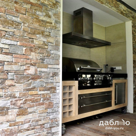Панель из натурального камня Кварцит бежевый. Данная панель представляет собой единую плитку, состоящую из склеенных кусочков натурального камня. Благодаря неровной поверхности достигается "объем" природного материала. Эти панели представлены в различных цветах, что дает возможность подобрать материал на Ваш вкус и цвет.Длина: 550 мм