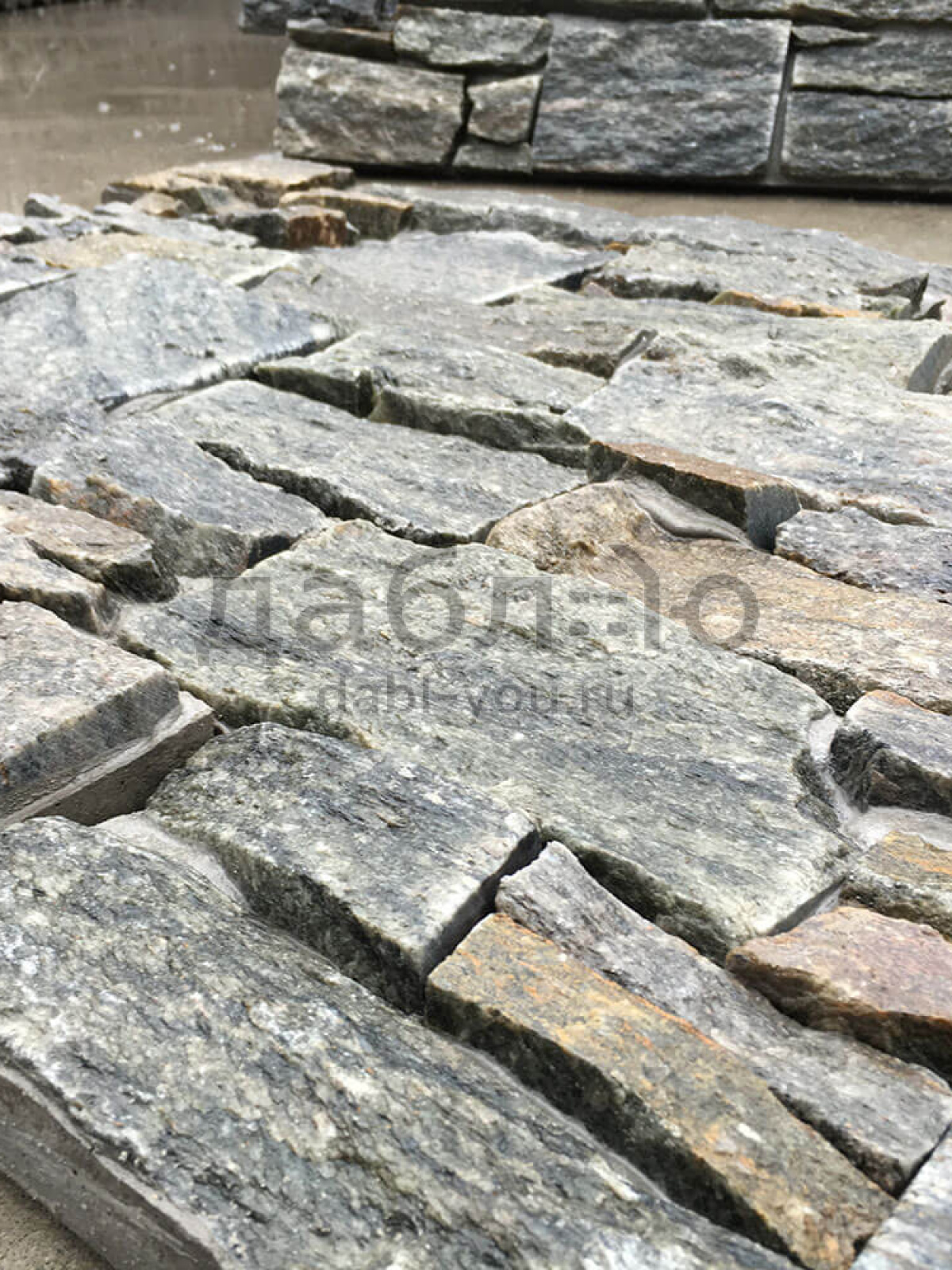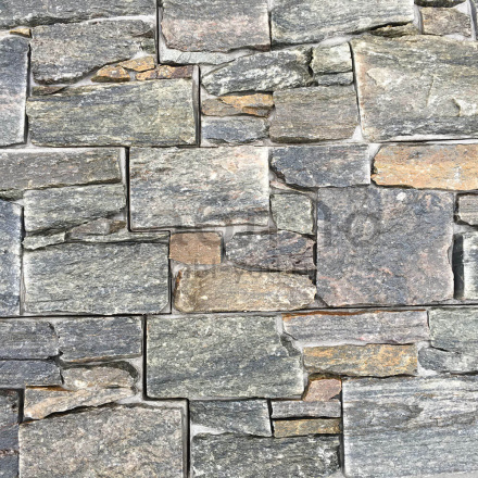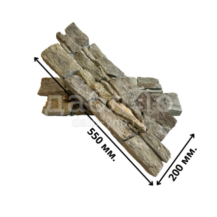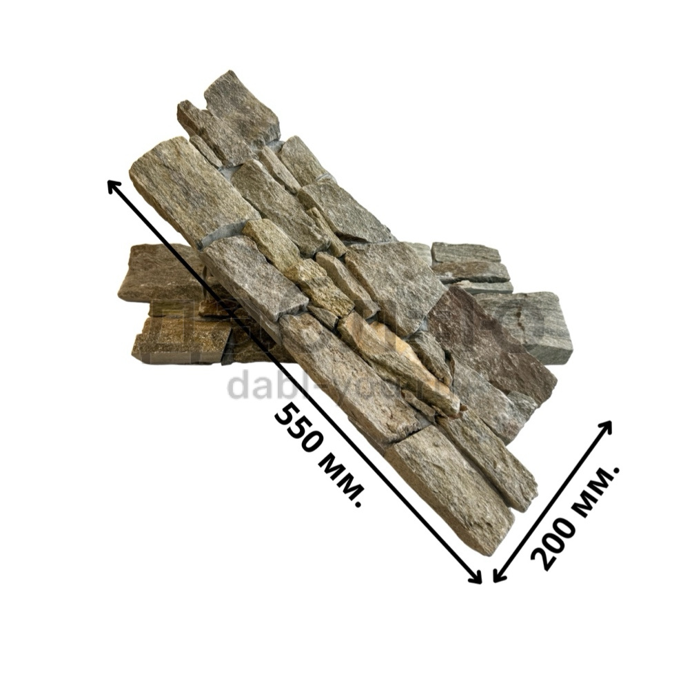 Панель из натурального камня Грубый камень Кварцит серо-зелёный. Данная панель представляет собой единую плитку, состоящую из склеенных кусочков натурального камня. Благодаря неровной поверхности достигается "объем" природного материала. Эти панели представлены в различных цветах, что дает возможность подобрать материал на Ваш вкус и цвет.- Длина: 550 мм