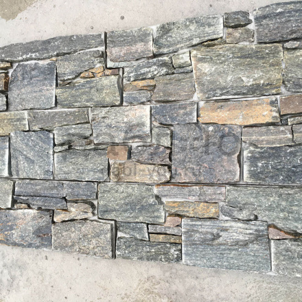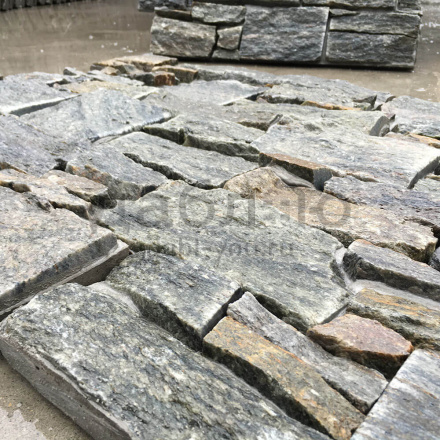 Панель из натурального камня Грубый камень Кварцит серо-зелёный