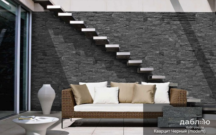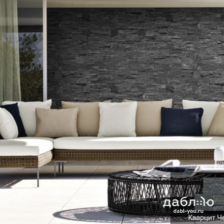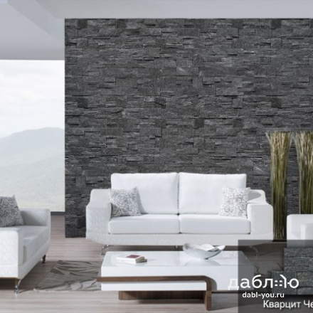 Панель из натурального камня Модерн Кварцит черный. Данная панель представляет собой единую плитку, состоящую из склеенных кусочков натурального камня. Благодаря неровной поверхности достигается "объем" природного материала. Эти панели представлены в различных цветах, что дает возможность подобрать материал на Ваш вкус и цвет.Длина: 350 мм