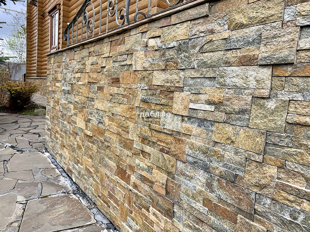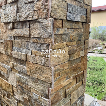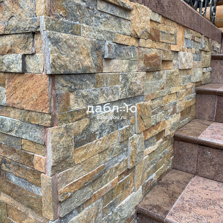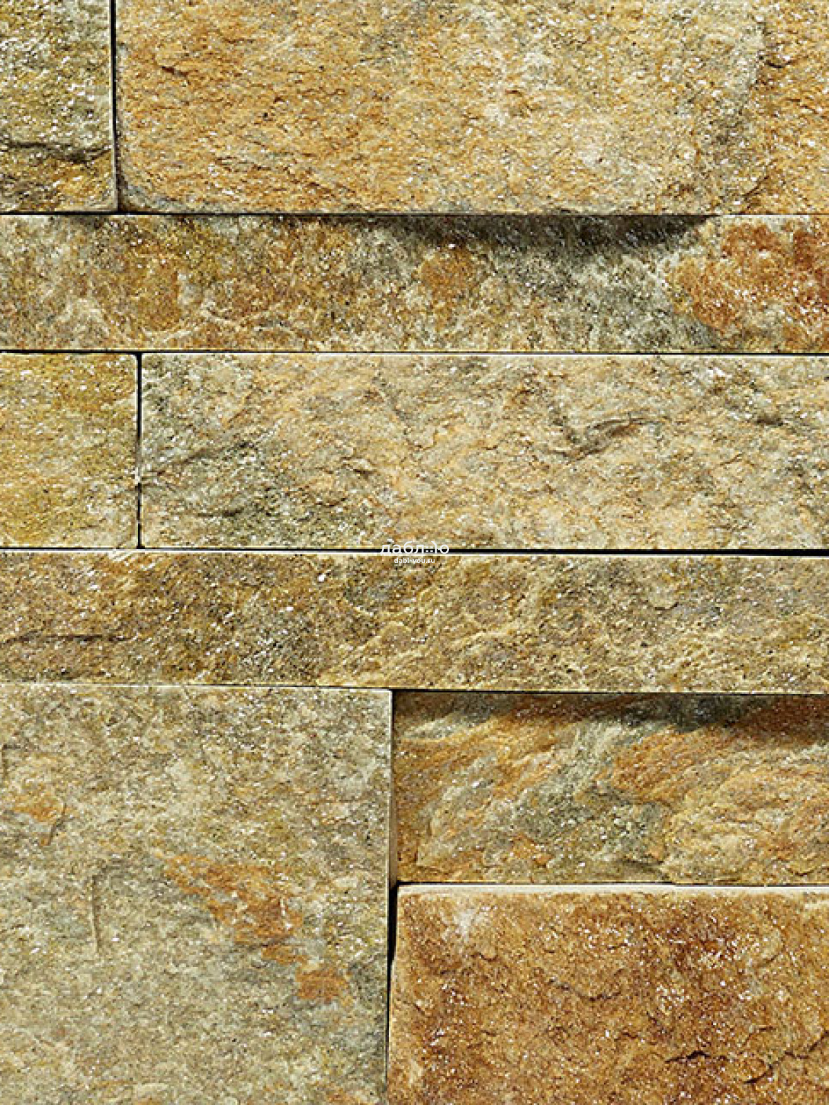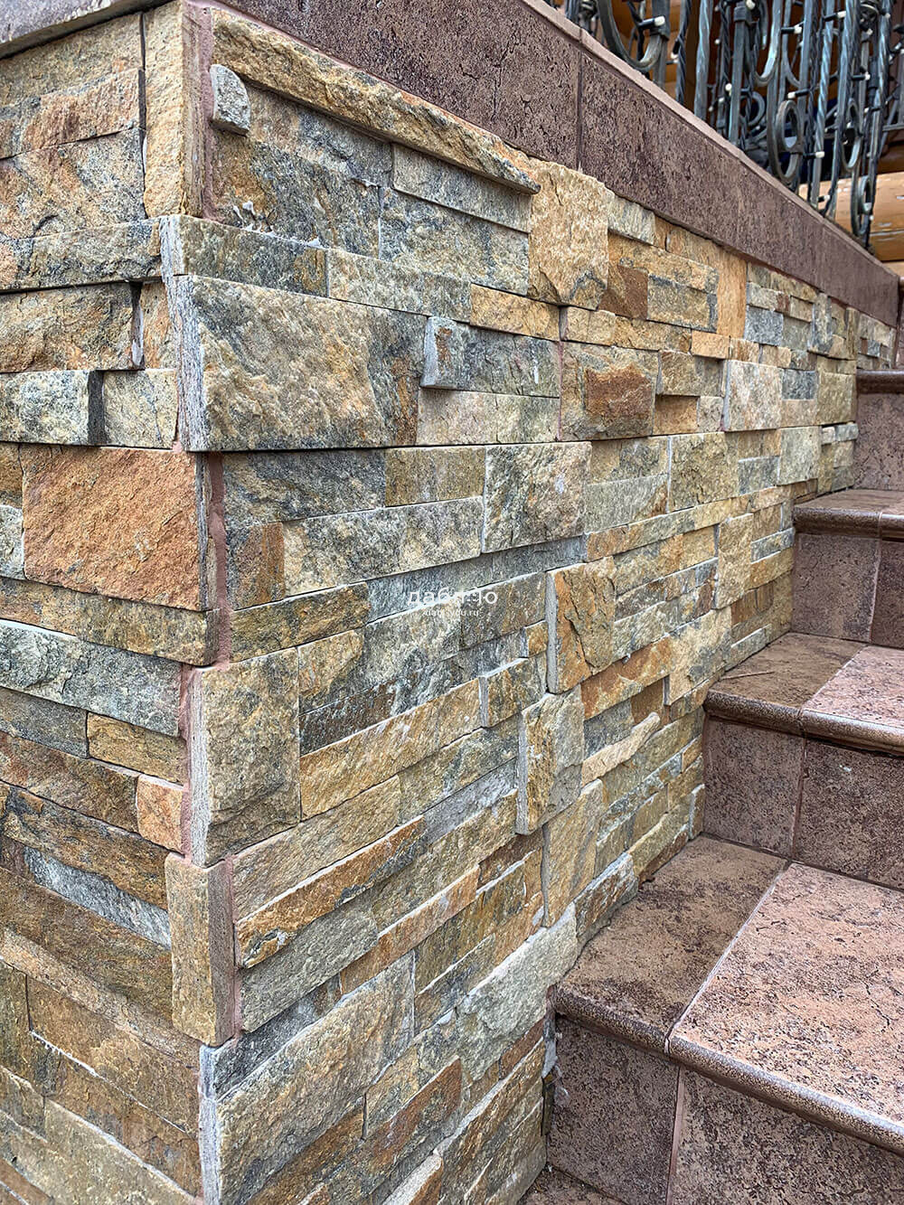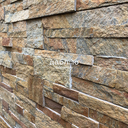 Панель из натурального камня Модерн Кварцит мультиколор. Данная панель представляет собой единую плитку, состоящую из склеенных кусочков натурального камня. Благодаря неровной поверхности достигается "объем" природного материала. Эти панели представлены в различных цветах, что дает возможность подобрать материал на Ваш вкус и цвет.Длина: 350 мм