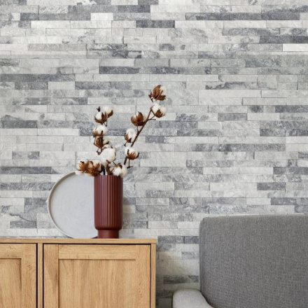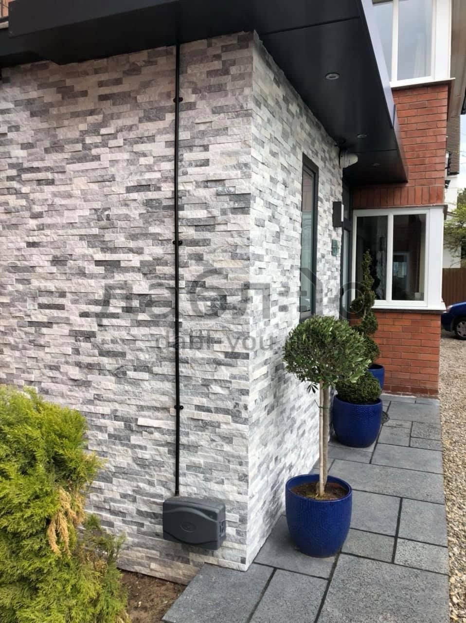 Панель из натурального камня Неоклассик Кварцит бело-серый. Данная панель представляет собой единую плитку, состоящую из склеенных кусочков натурального камня. Благодаря неровной поверхности достигается "объем" природного материала. Эти панели представлены в различных цветах и размерах, что дает возможность подобрать материал на Ваш вкус и цвет.- Длина: 600 мм