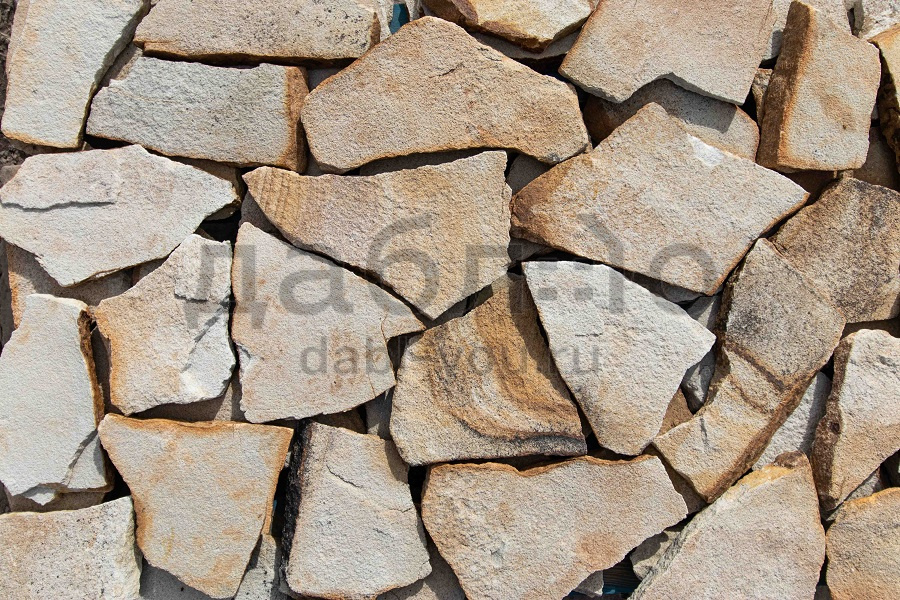 Песчаник слоновая кость рваный край 40 мм. Пестрый светлый песчаник для мощения. Морозостойкий и прочный. Натуральный природный камень - не выгорает и не выцветает.Толщины: 40 мм