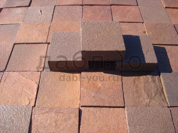 Песчаник красный брусчатка пиленая 100x100x40 мм. Красная тротуарная плитка из песчаника подойдет для мощения пешеходных дорожек и отмосток. Прочный и морозостойки материал. Имеет натуральный цвет, который не выцветает и не вымывается.- Вес: 95 кг/м2