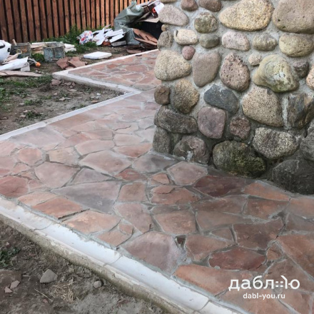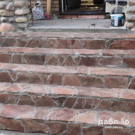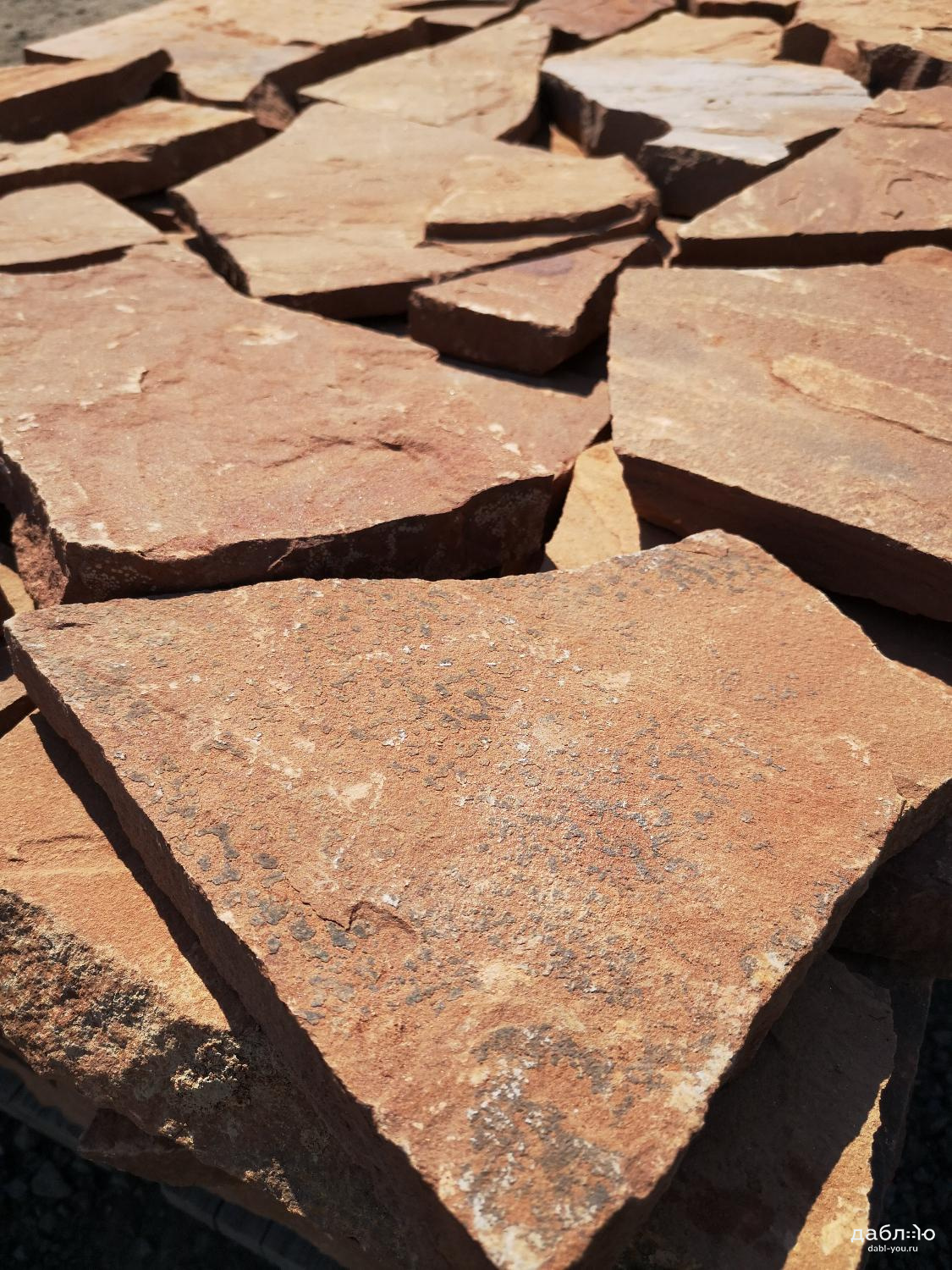 Песчаник красный рваный край толщиной 40 мм. Красный обоженный песчаник обладает рядом такими преимуществами как высокая морозостойкость, влагоустойчивость и прочность; песчаник чудно сохраняет внешний вид, несмотря на солнечное воздействие, и хорошо аккумулирует и отдает обратно тепло. Подходит для мощения дорожек и ландшафтного дизайна.- Вес: 100 кг/м2