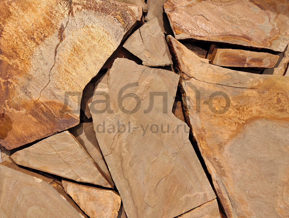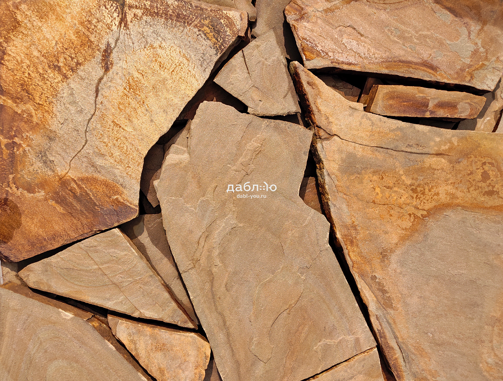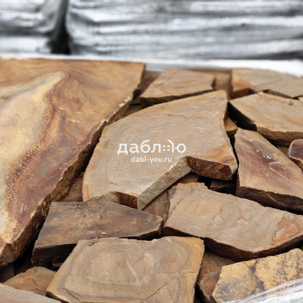 Песчаник опавшая листва рваный край 20 мм. Красивый песчаник с ярким и выразительным оттенком. Обладает высокой прочностью и будет отлично смотреться в качестве строительного материала на вашем фасаде.Толщины: 20 мм