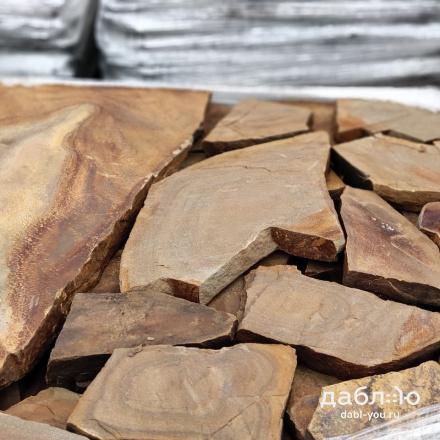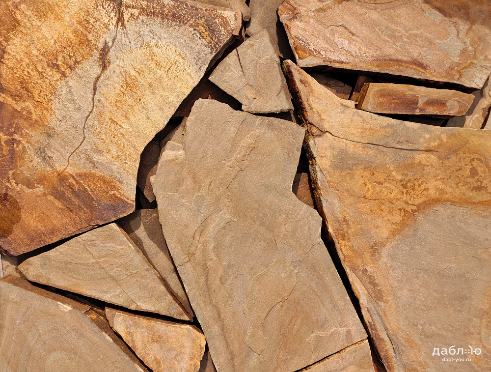 Песчаник опавшая листва рваный край 30 мм. Красивый песчаник с ярким и выразительным оттенком. Обладает высокой прочностью и будет отлично смотреться в качестве строительного материала на вашем фасаде.Толщины: 30 мм
