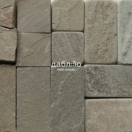 Песчаник серо-зеленый брусчатка галтованная 100x100x40 мм