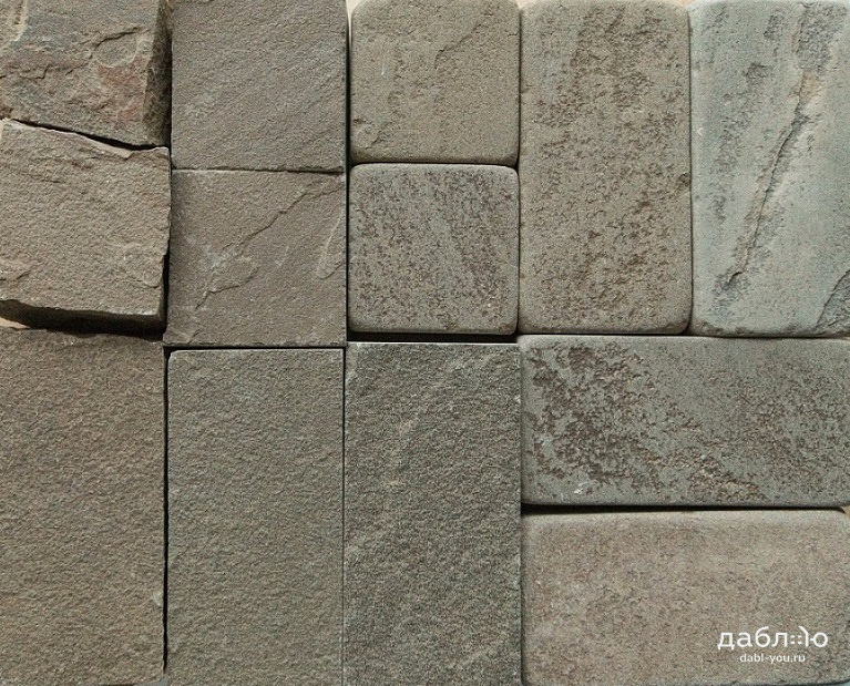 Песчаник серо-зеленый брусчатка пиленая 100x200x50 мм