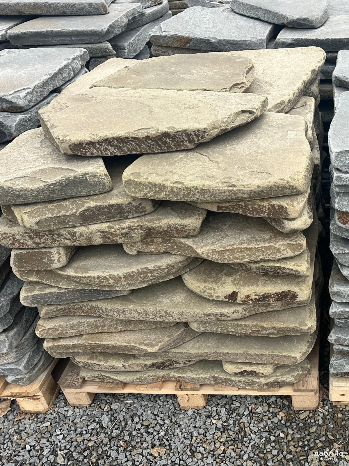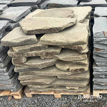 Песчаник серо-зеленый рваный край галтованный 40 мм. Приятный и спокойный зеленый оттенок камня подойдет для реализации множества дизайнерских проектов. Благодаря своему химическому составу и физико-механическим характеристикам песчаник является очень прочным материалом.- Вес: 95 кг/м2