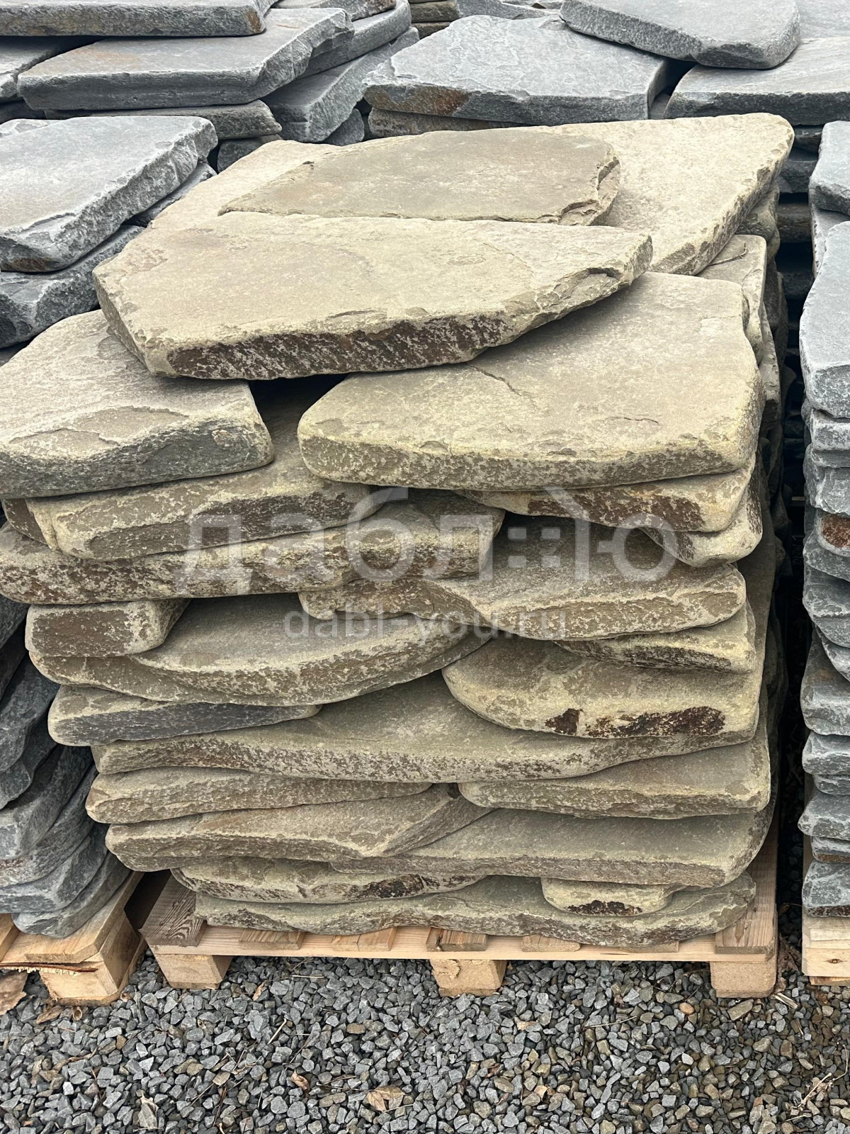 Песчаник серо-зеленый рваный край галтованный 50 мм. Приятный и спокойный зеленый оттенок камня подойдет для реализации множества дизайнерских проектов. Благодаря своему химическому составу и физико-механическим характеристикам песчаник является очень прочным материалом.- Вес: 115 кг/м2
