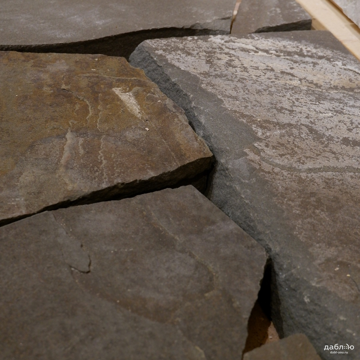 Песчаник синяк серо-синий рваный край 50 мм. Песчаник считается одним из самых крепких натуральных камней, поэтому его чаще всего выбирают для строительства и облагораживания загородных домов. Серо-синий песчаник выгодно выделяется своим цветом и будет прекрасно смотреться на дорожках и парковках.- Вес: 133 кг/м2