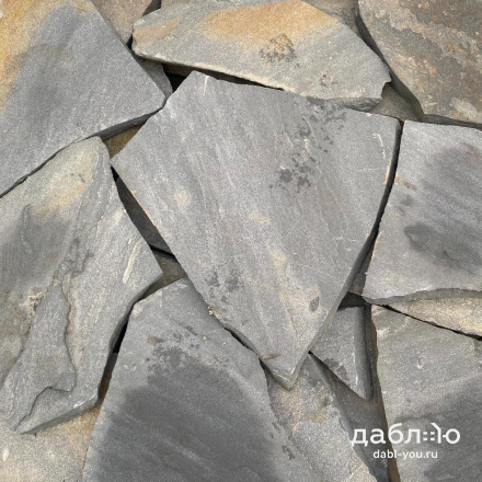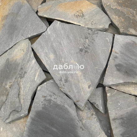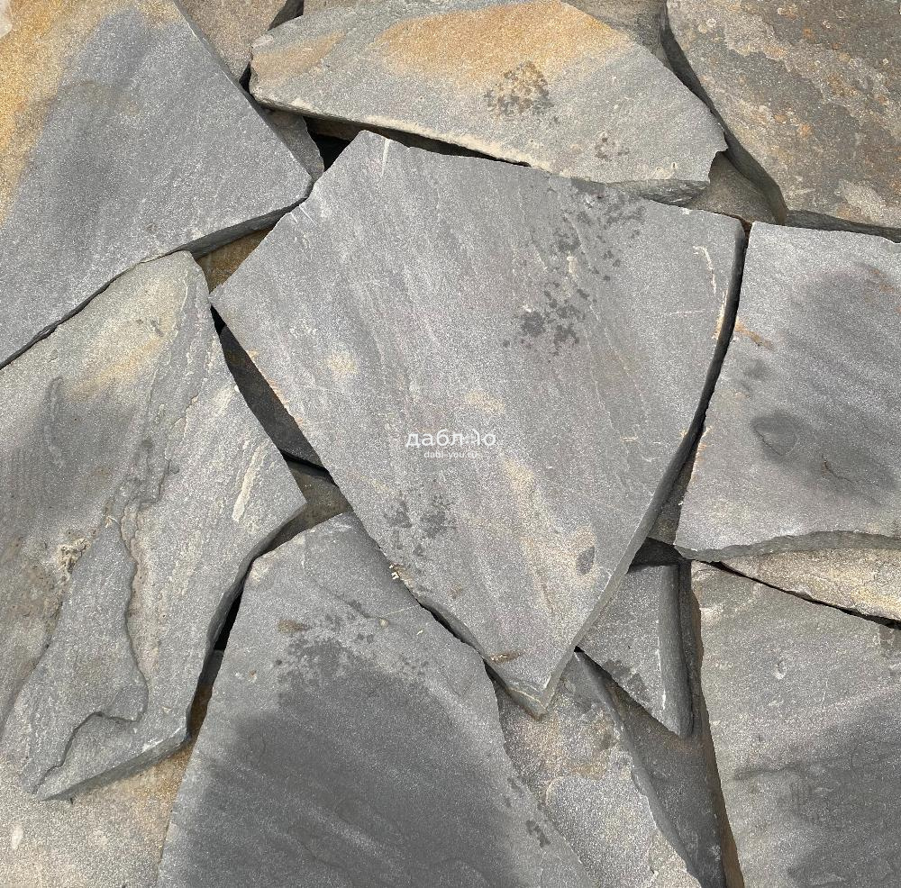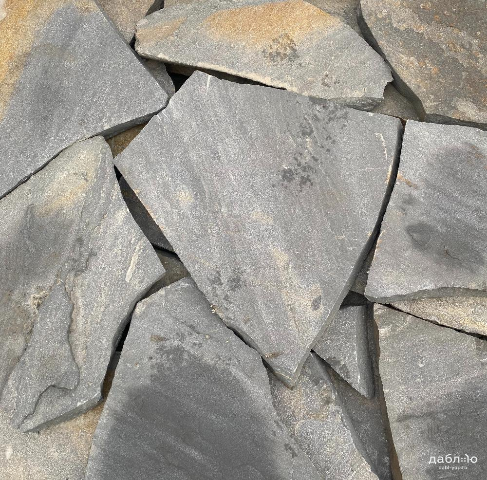 Песчаник синяк синий рваный край 50 мм. Песчаник считается одним из самых крепких натуральных камней, поэтому его чаще всего выбирают для строительства и облагораживания загородных домов. Синий песчаник выгодно выделяется своим цветом и будет прекрасно смотреться на дорожках и парковках.- Вес: 105 кг/м2