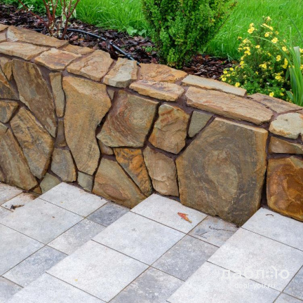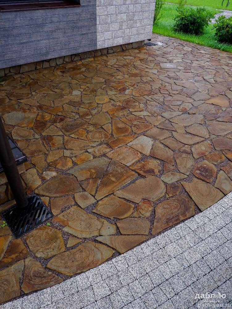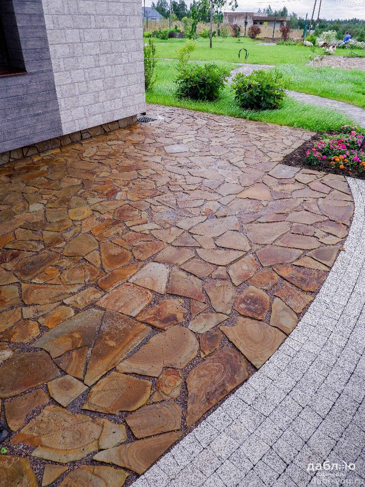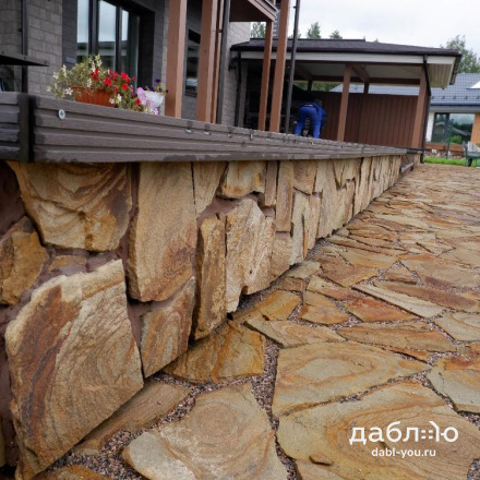 Песчаник тигровый рваный край 40 мм. Очень прочный камень с привлекательной расцветкой. Природный камень с толщиной 40 мм используют в качестве материала для садовых дорожек и парковочных зон. Отлично сочетается со многими материалами.- Вес: 100 кг м2