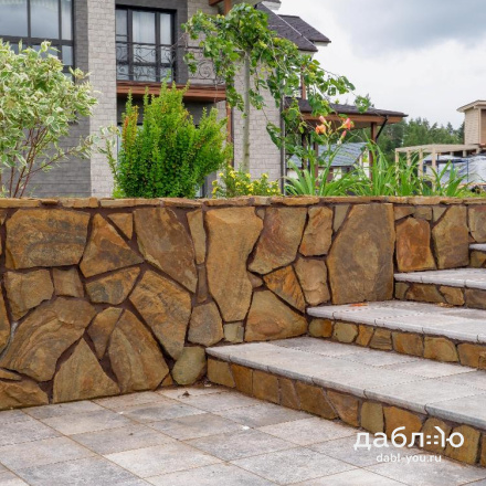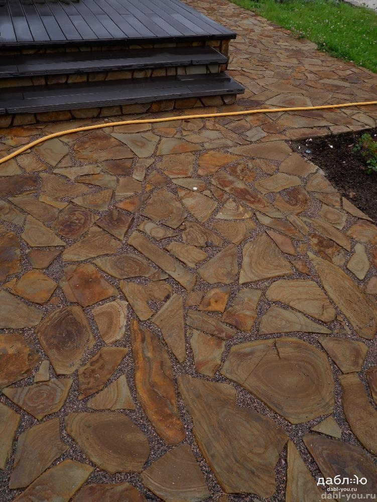 Песчаник тигровый рваный край 50 мм. Песчаник считается одним из самых крепких натуральных камней, поэтому его чаще всего выбирают для строительства и облагораживания загородных домов. Тигровый песчаник выгодно выделяется своим ярким рисунком и будет прекрасно смотреться на дорожках и парковках.- Вес: 105,26 кг м2