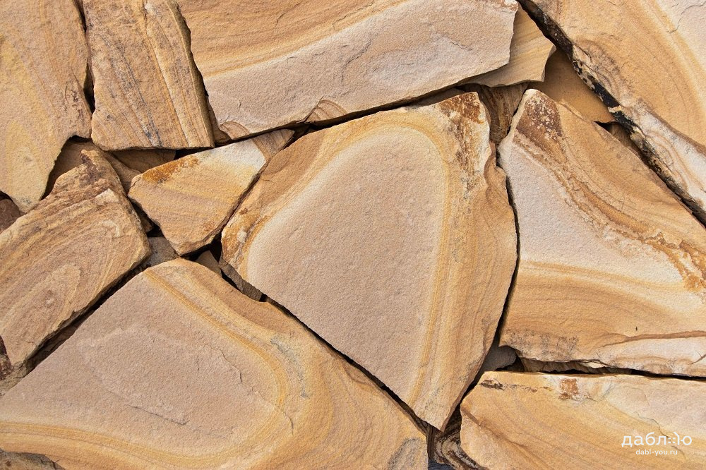 Песчаник желто-коричневый с разводами рваный край 20 мм
