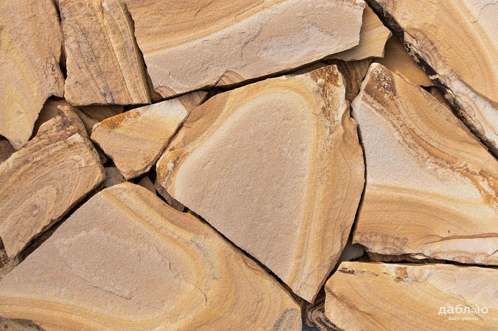 Песчаник желто-коричневый с разводами рваный край 40 мм