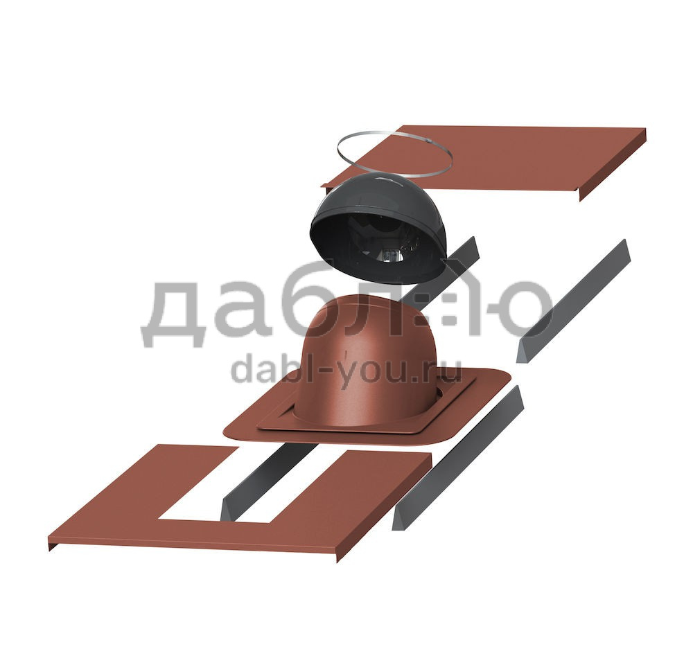 Piippu проходной элемент + окантовка no.1. Проходной элемент для герметизации вывода на кровлю круглых металлических теплоизолированных дымовых труб.Piippu проходной элемент + окантовка No.1 для герметизации вывода круглых металлических теплоизолированных дымовых труб диаметром 200 -265 мм на все виды кровли, кроме битумной.
