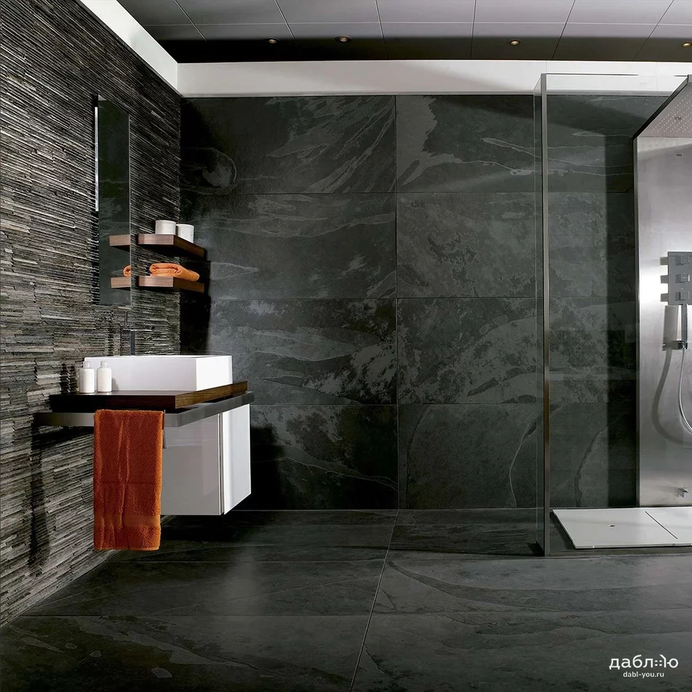 Плитка из натурального камня Сланец черный (натуральный скол) 600х300. Плитку из натурального камня можно использовать как на отделку стен, так и отделку пола. Это природный материал отлично украсит Ваш дом.Длина: 600 мм