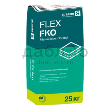 Плиточный клей оптимальный (CO) strasser FLEX FKO, 25 кг. Клеевая смесь для укладки керамической и кафельной плитки, на пол и на стены. Только для внутреннего применения.- влажность сухой смеси: не более 0,5%