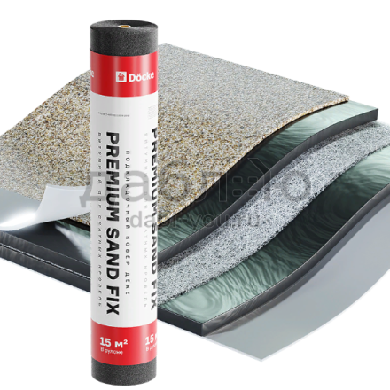 Подкладочный ковер Docke Premium Sand Fix, 15 м. Подкладочный ковер представляет собой рулонный битумный материал, который укладывается на жесткое сплошное основание (OSB-3 или влагостойкую фанеру ФСФ) непосредственно под финишное покрытие. Подкладочный ковер необходим на крыше любой формы, размеров и конфигурации, так как его наличие существенно увеличивает срок службы как самого финишного покрытия, так и всего кровельного конструктива.Характеристики