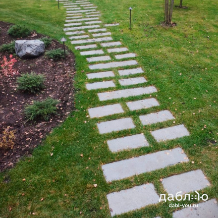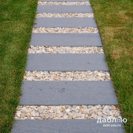 Пошаговая плита из гранита Габбро. Применяется для создание пошаговых дорожек и в качестве элемента ландшафтного дизайна дома. Будет хорошо сочетаться с такими материалами как галька или крошка.Характеристики