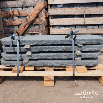 Пошаговая плита из гранита Габбро (рубленный край). Применяется для создание пошаговых дорожек и в качестве элемента ландшафтного дизайна дома. Будет хорошо сочетаться с такими материалами как галька или крошка.Характеристики