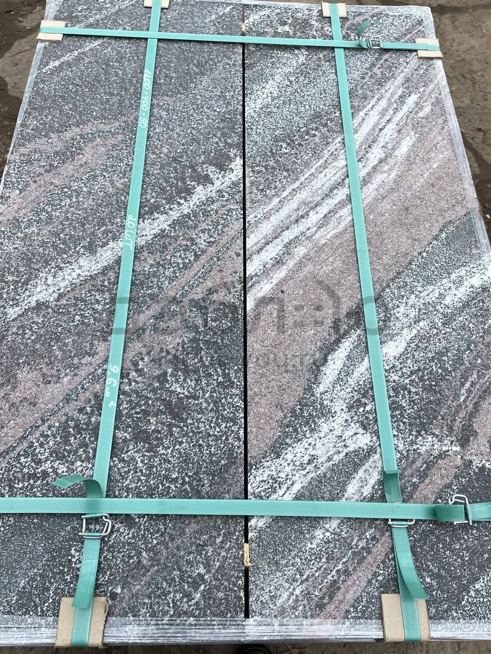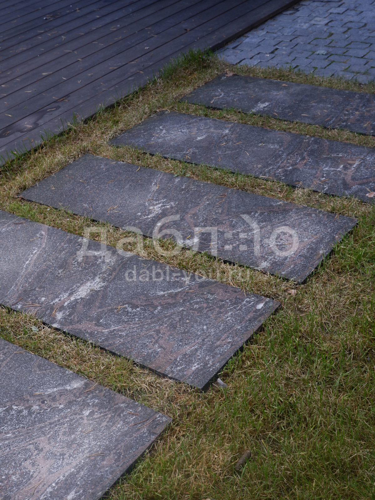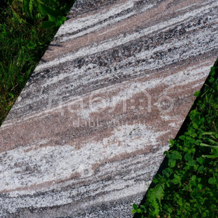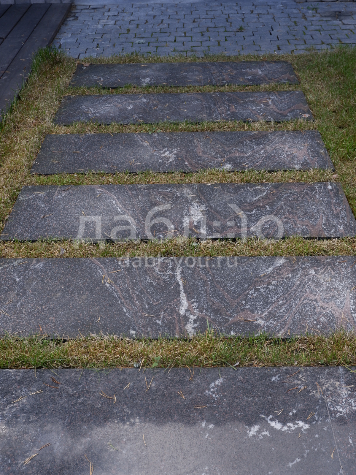 Пошаговая плита из гранита Гранатовый амфиболит (боковые грани пиленые, верх термо).Цвет черно-бело-красный с разводами выраженного красного и белого цветов.