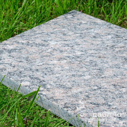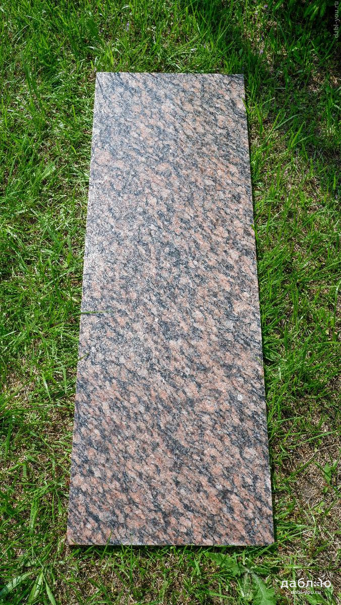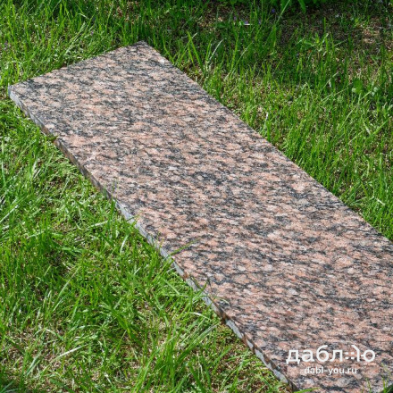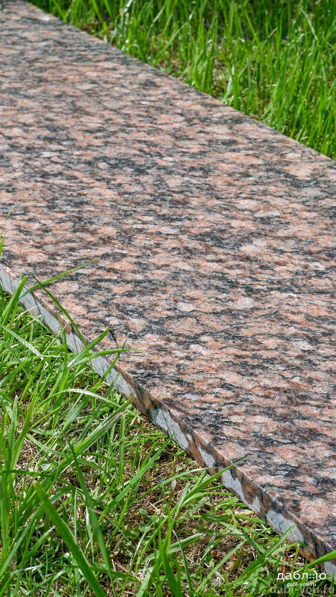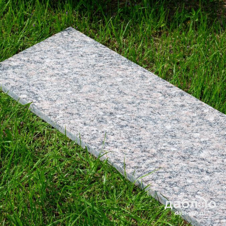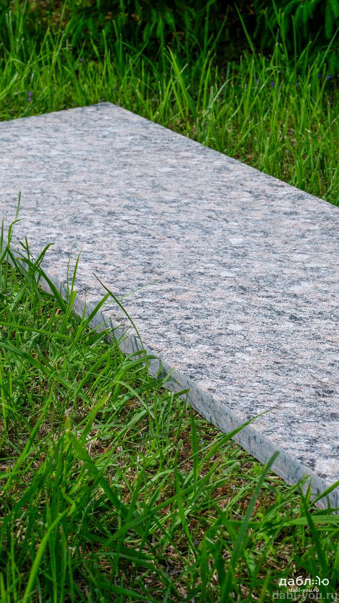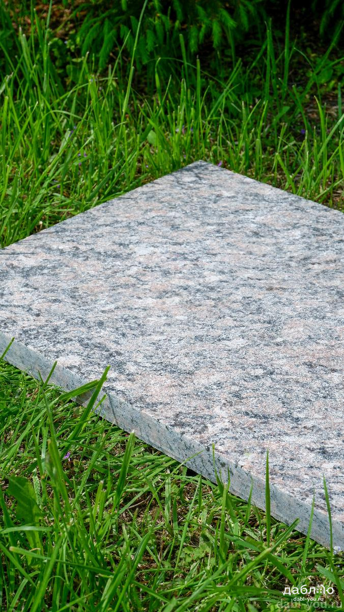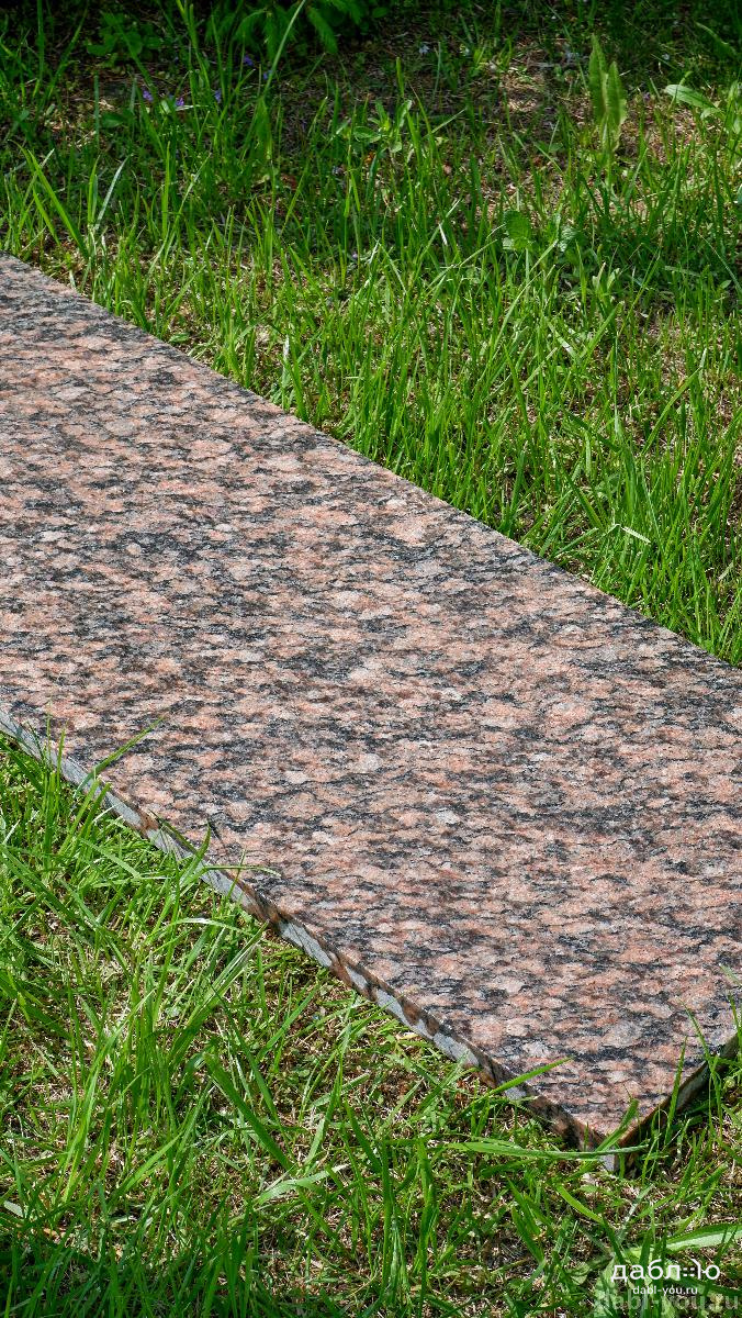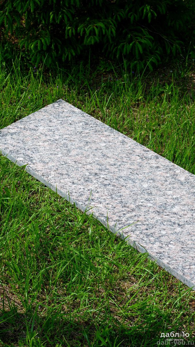 Пошаговая плита из гранита Ладожский. Применяется для создание пошаговых дорожек и в качестве элемента ландшафтного дизайна дома. Будет хорошо сочетаться с такими материалами как галька или крошка.Характеристики