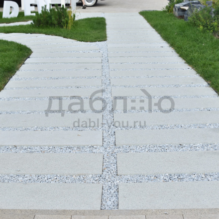Пошаговая плита из гранита Мансуровский (боковые грани пиленые, верх термо), 1200*400*50мм.Цвет белый, светло-серый, немного с зеленцой может быть