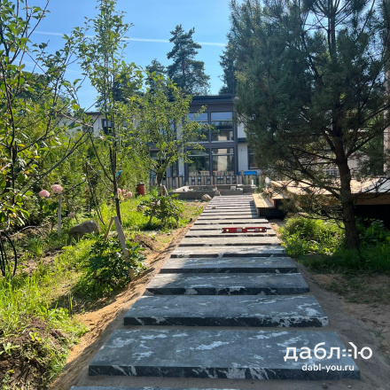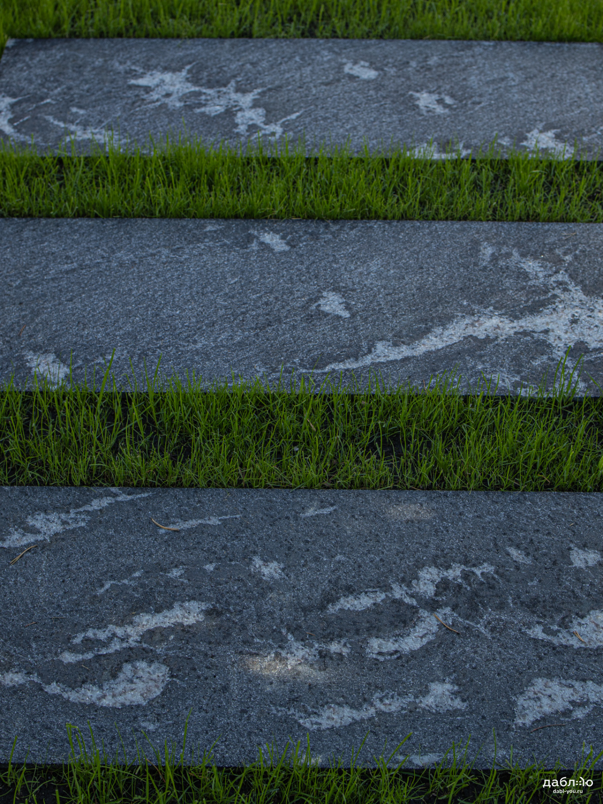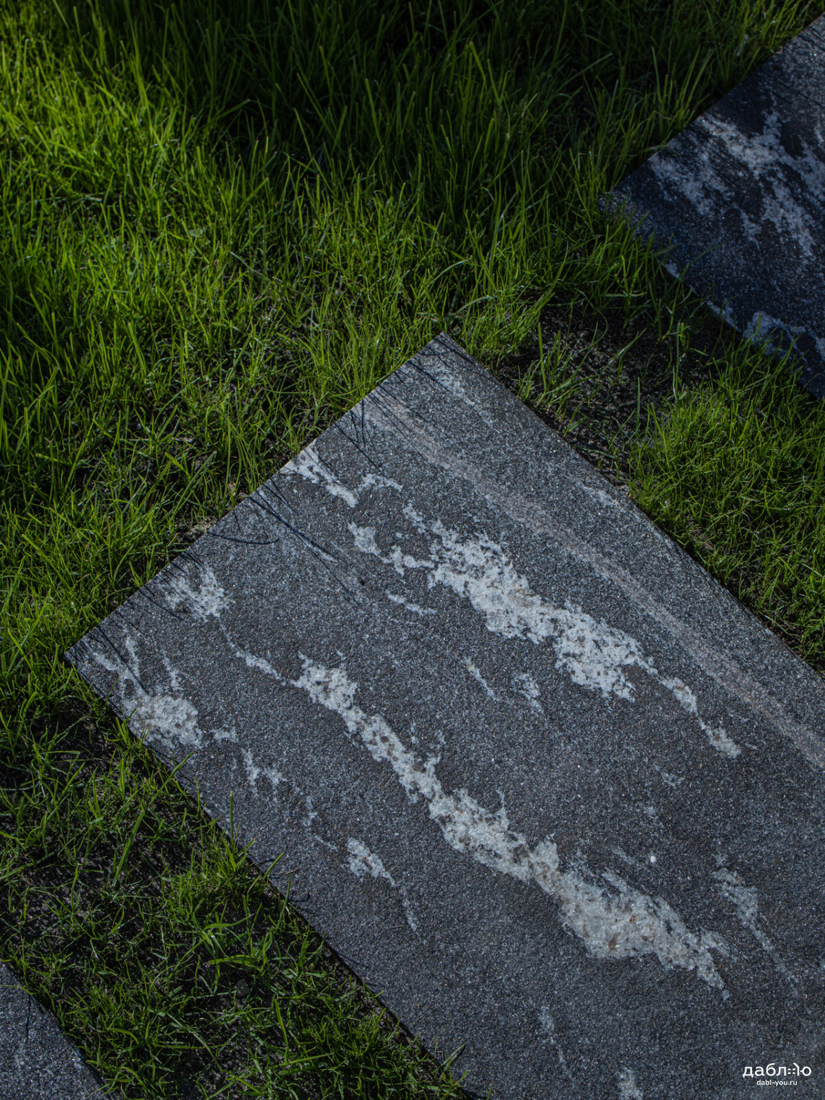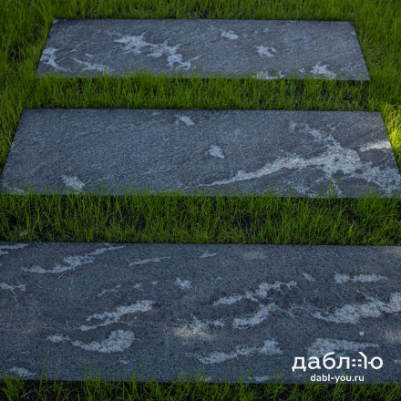 Пошаговая плита из гранита Приполярный. Применяется для создание пошаговых дорожек и в качестве элемента ландшафтного дизайна дома. Будет хорошо сочетаться с такими материалами как галька или крошка.Характеристики
