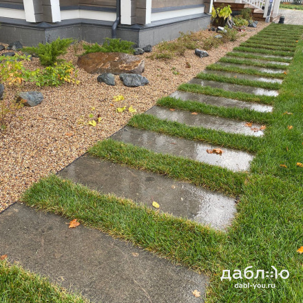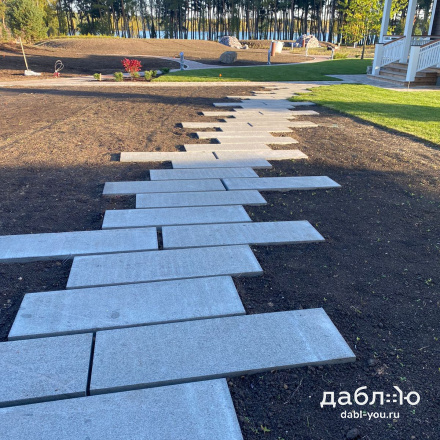 Пошаговая плита из гранита Шонгуй. Применяется для создание пошаговых дорожек и в качестве элемента ландшафтного дизайна дома. Будет хорошо сочетаться с такими материалами как галька или крошка.Характеристики
