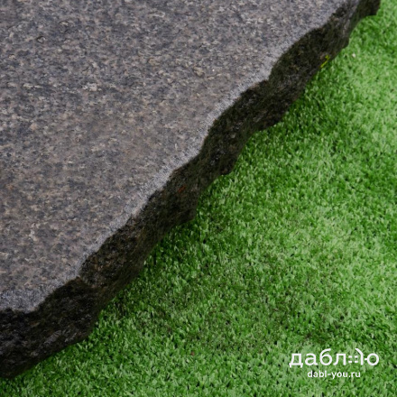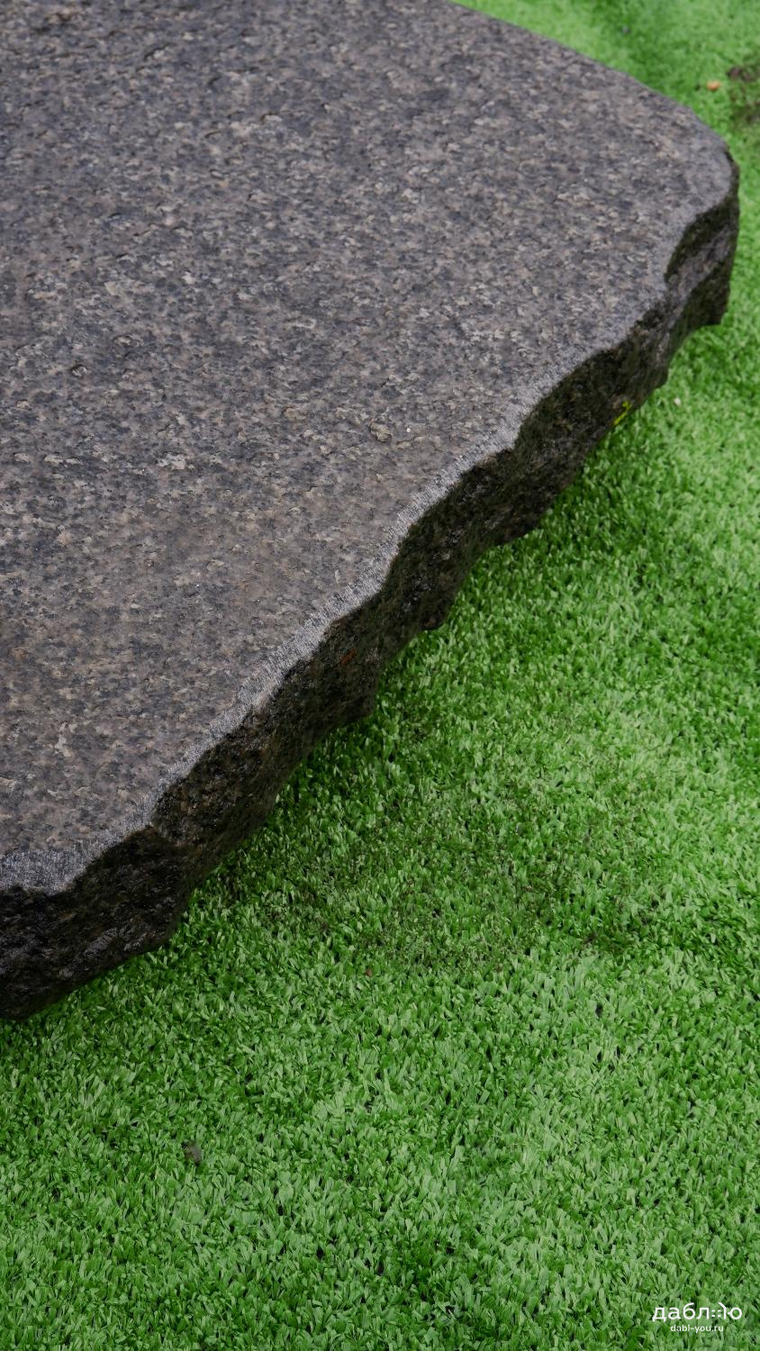 Пошаговая плита из гранита Шонгуй (рубленный край). Применяется для создание пошаговых дорожек и в качестве элемента ландшафтного дизайна дома. Будет хорошо сочетаться с такими материалами как галька или крошка.