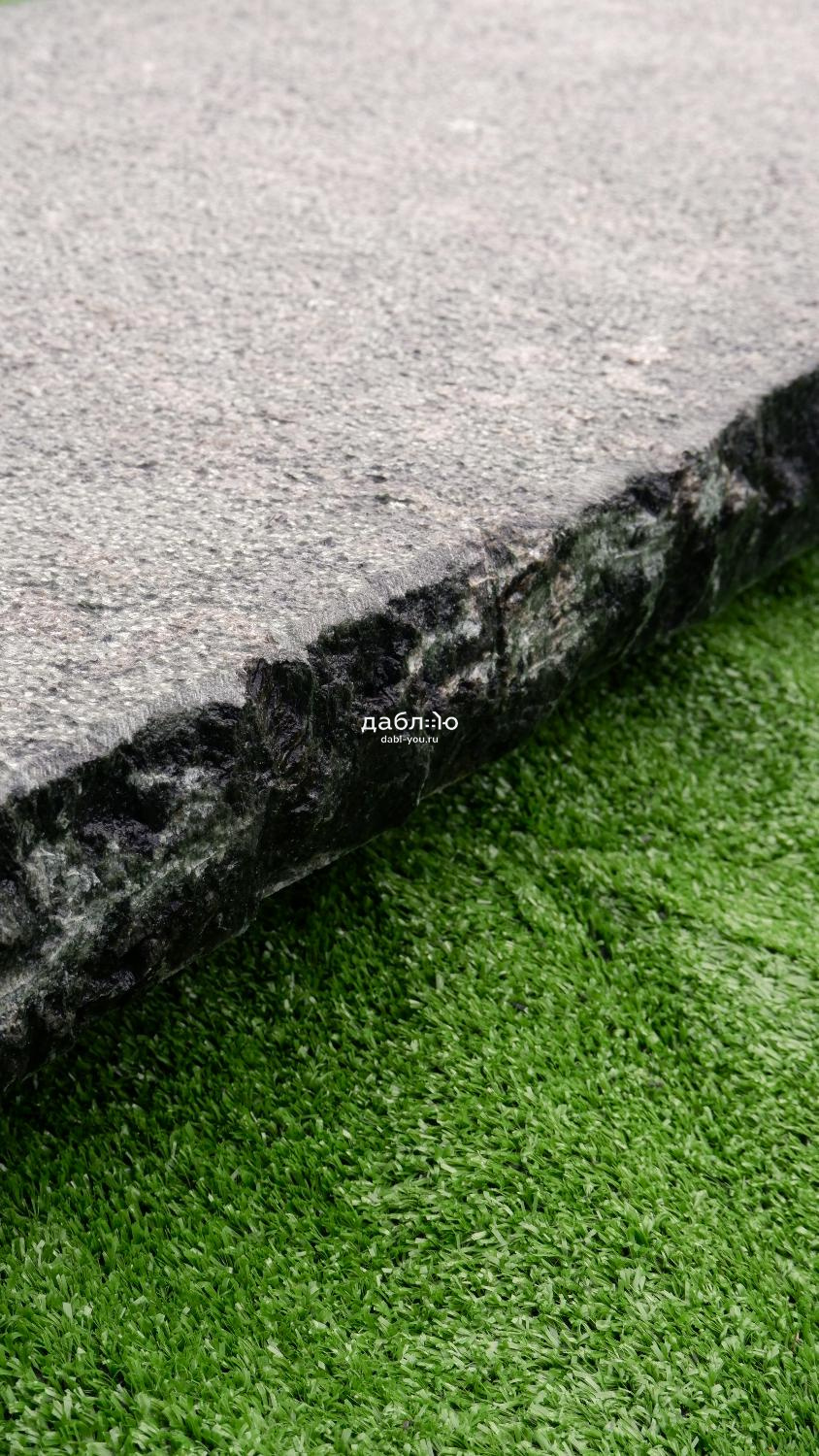 Пошаговая плита из гранита Сопка Бунтина (боковые грани рубленные, верх бучарда), 1200*400*50мм.Цвет черно-коричневый, может присутствовать зеленый оттенок