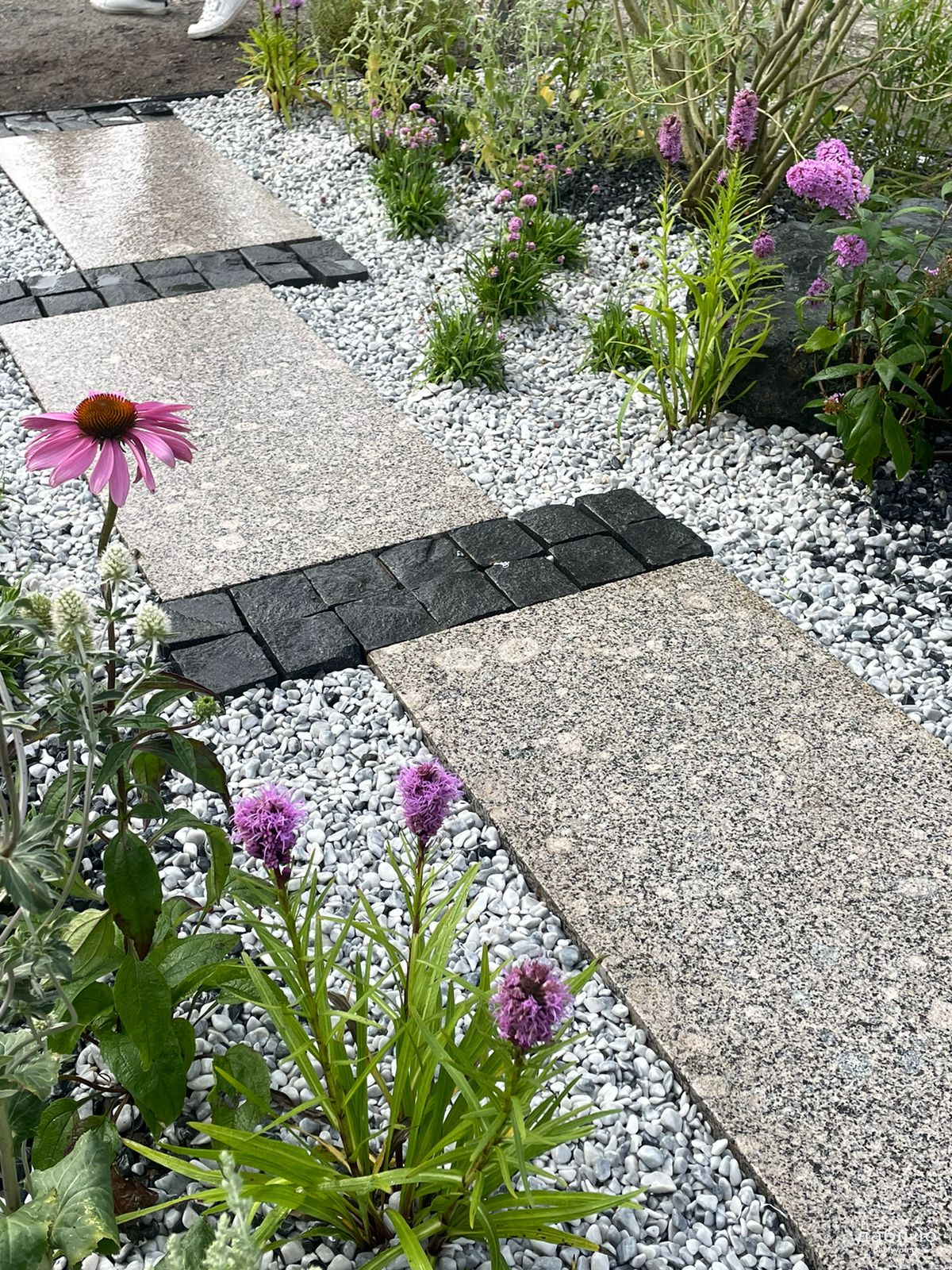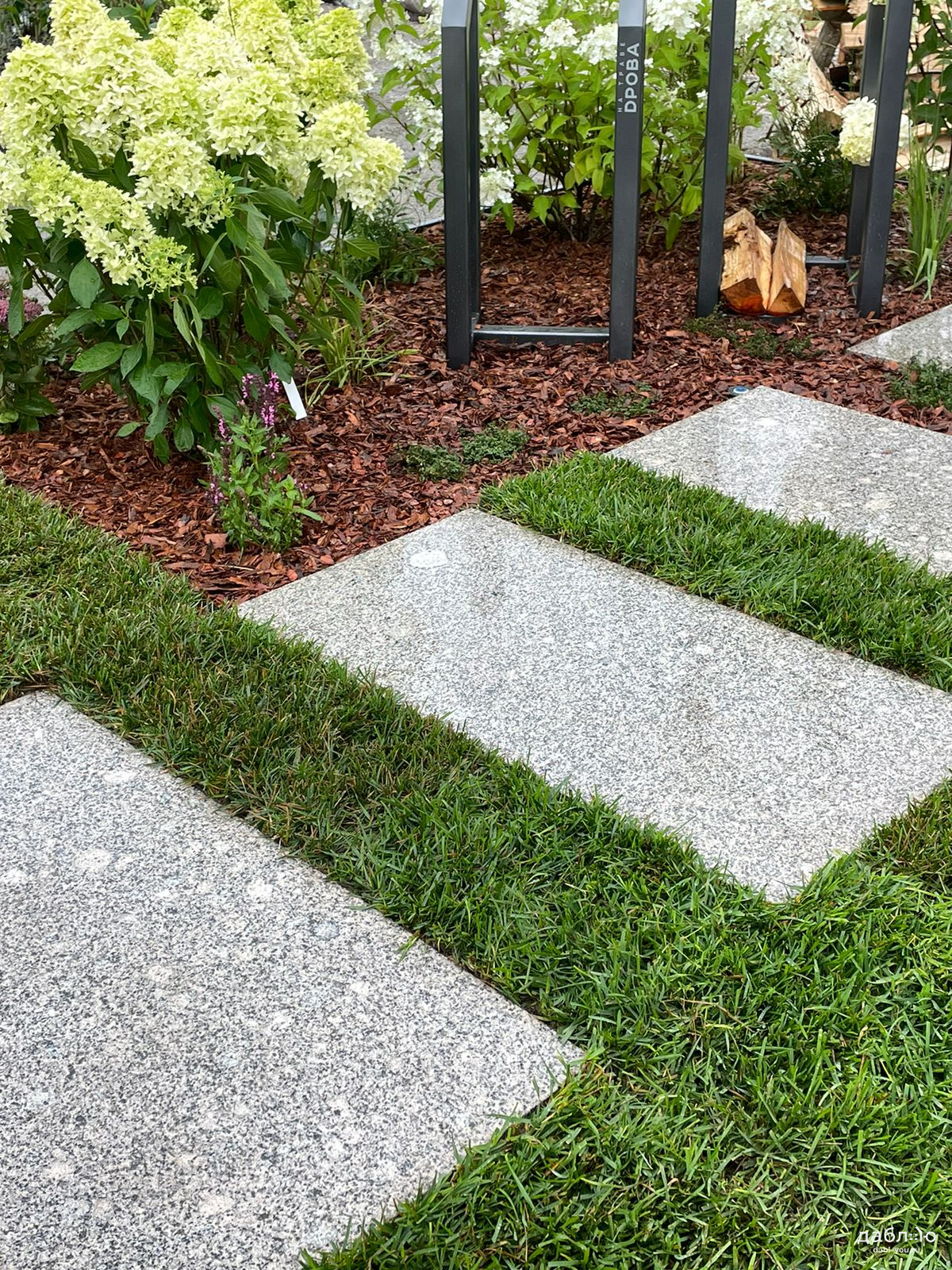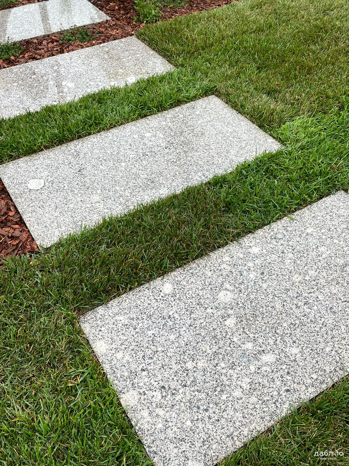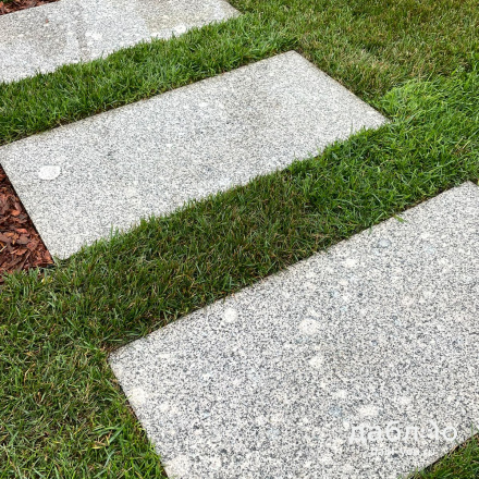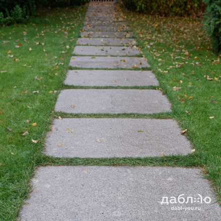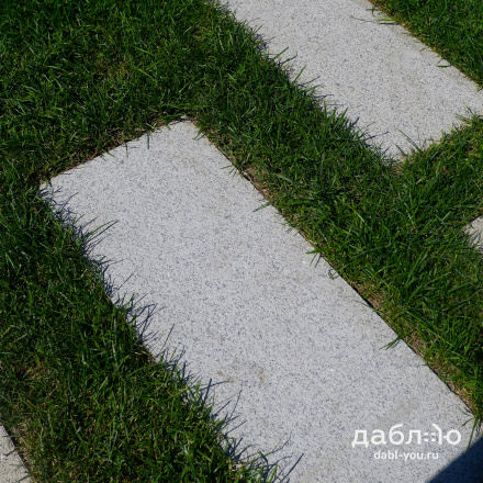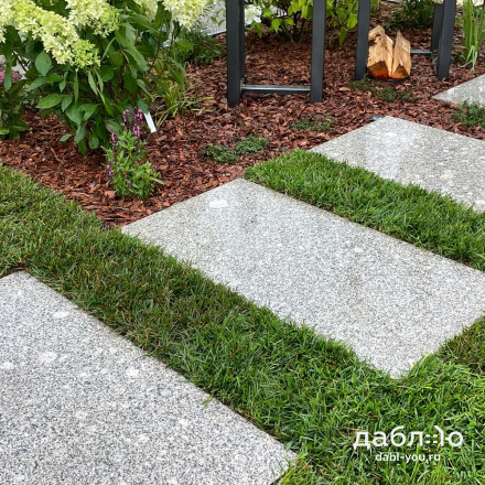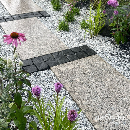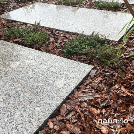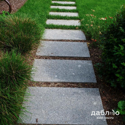 Пошаговая плита из гранита Возрождение. Применяется для создание пошаговых дорожек и в качестве элемента ландшафтного дизайна дома. Будет хорошо сочетаться с такими материалами как галька или крошка.Характеристики