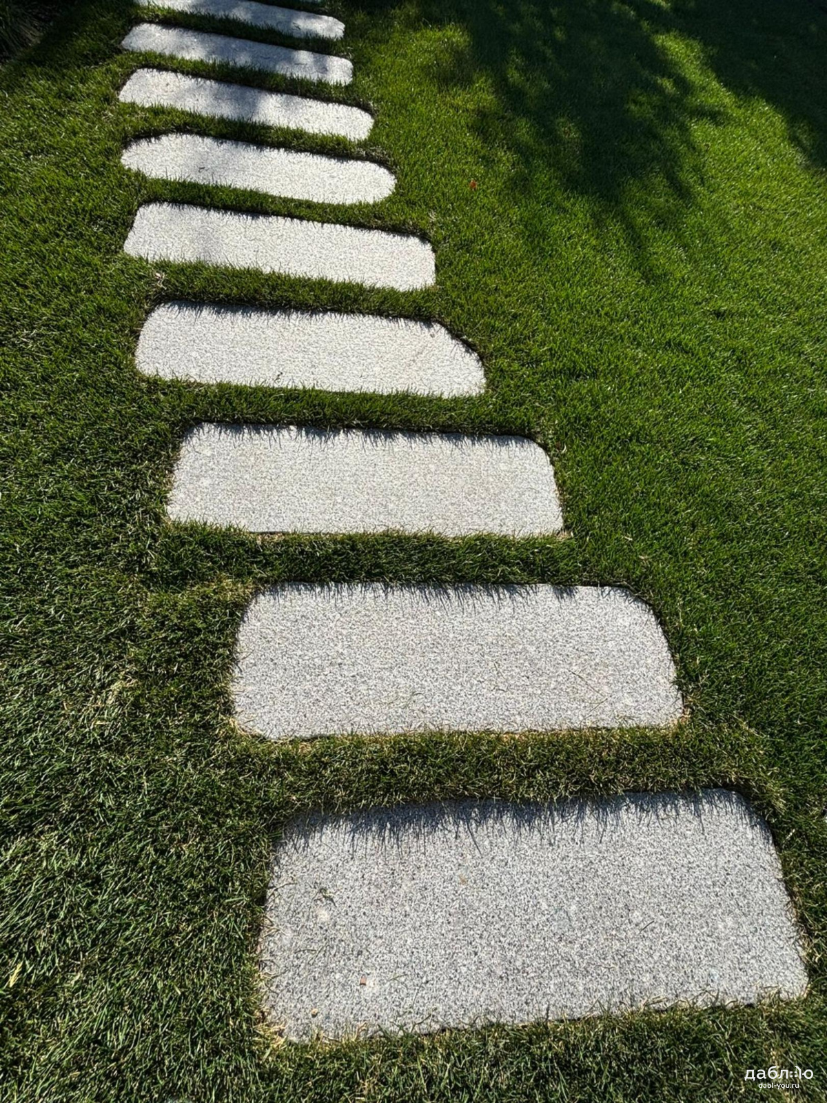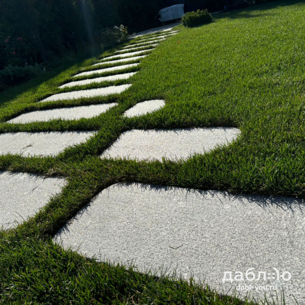 Пошаговая плита из гранита Возрождение (рубленный край). Применяется для создание пошаговых дорожек и в качестве элемента ландшафтного дизайна дома. Будет хорошо сочетаться с такими материалами как галька или крошка.Характеристики