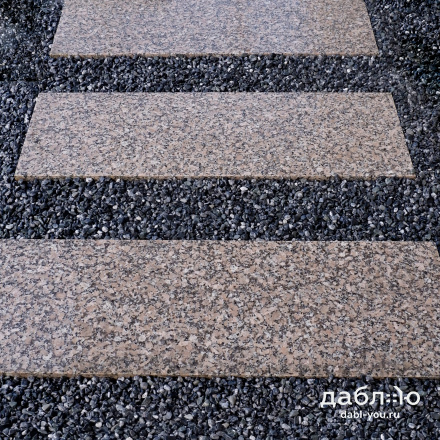 Пошаговая плита из гранита Жалгыз. Применяется для создание пошаговых дорожек и в качестве элемента ландшафтного дизайна дома. Будет хорошо сочетаться с такими материалами как галька или крошка.Характеристики