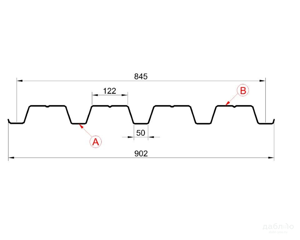 Профлист Металл Профиль H-60x845-A,B. Предназначен для организации несущих конструкций и устройства скатных кровель. Материал выполнен из холоднокатаной оцинкованной стали, толщиной 0,5-0,9 мм и имеет трапецевидную форму профиля. При достаточно большой ширине ребра, расстояние шага составляет всего 50 мм, усиление конструкции и повышенную стойкость к изгибу обеспечивают дополнительные канавки.Представлен в различных цветах и покрытиях.