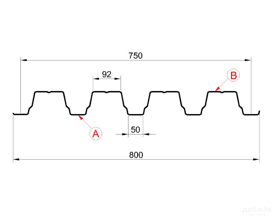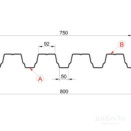 Профлист Металл Профиль H-75x750-A,B. Имеет трапецевидную форму с высотой ребра 75 мм и шириной 92 мм, шаг составляет 50 мм. К особенностям геометрии данного профиля можно отнести наличие дополнительных канавок на каждом ребре, а также рельефной поверхности ребер, что в целом позволяет значительно усилить устойчивость материала к изгибу при значительных нагрузках.Представлен в различных цветах и покрытиях.