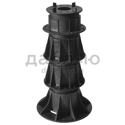 Регулируемая опора Level 3D для керамогранита 280-435 мм. Опоры выполнены из полипропилена — термостойкого плотного материала, не подвергающегося коррозийному растрескиванию и воздействию агрессивной химической среды. Универсальность опор дает возможность использовать их при строительстве объектов с различными типами покрытия: террасной доской, изделиями из бетона, плитами из натурального камня или утолщенного керамогранита. Межконструкционное пространство обеспечивает хорошую вентиляцию, защиту от солнечных лучей и эффективную теплоизоляцию.Толщина: 280-435 мм