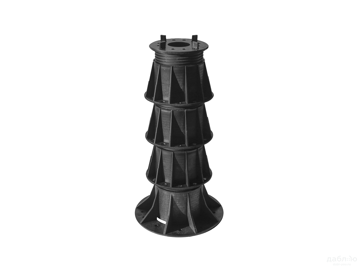 Регулируемая опора Level 3D для керамогранита 315-495 мм. Опоры выполнены из полипропилена — термостойкого плотного материала, не подвергающегося коррозийному растрескиванию и воздействию агрессивной химической среды. Универсальность опор дает возможность использовать их при строительстве объектов с различными типами покрытия: террасной доской, изделиями из бетона, плитами из натурального камня или утолщенного керамогранита. Межконструкционное пространство обеспечивает хорошую вентиляцию, защиту от солнечных лучей и эффективную теплоизоляцию.Толщина: 315-495 мм
