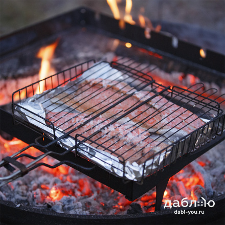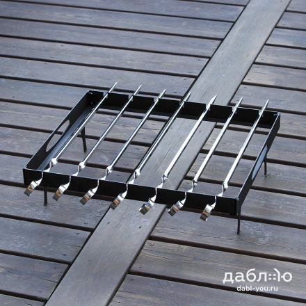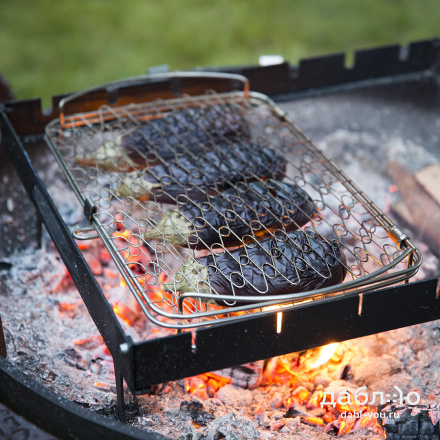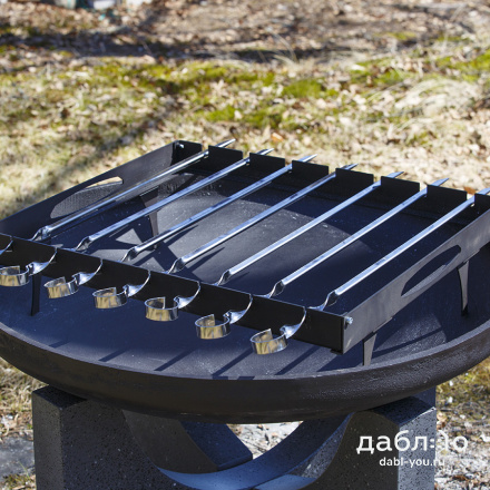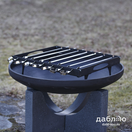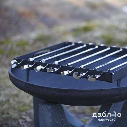 Шашлычный модуль Concretika. Шашлычный модуль для костровых чаш предназначен для приготовления шашлыка и других блюд на костровых чашах. Шашлычный модуль может использоваться как самостоятельно для приготовления мяса на шампурах, так для приготовления множества других блюд - для копчения, жарки рыбы на специальных решетках, а также для использования стандартных решеток для жарки рыбы и мяса.Шашлычница металлическая: 56х46,5х15 см