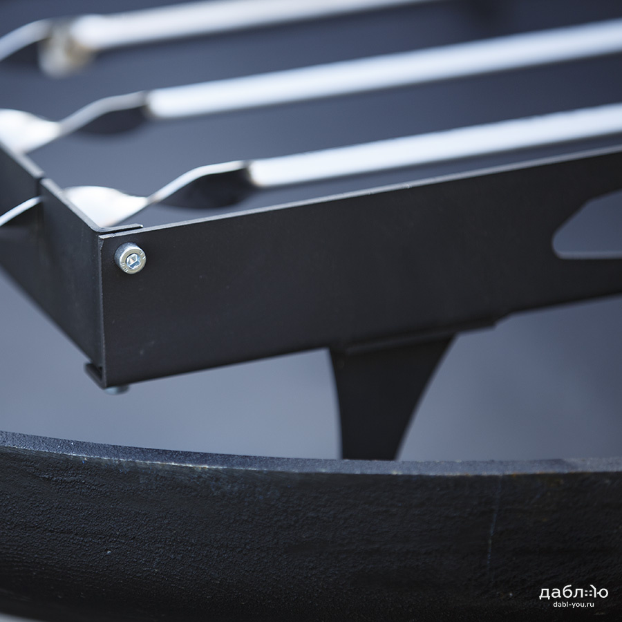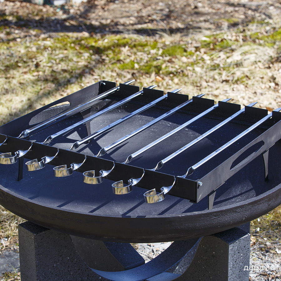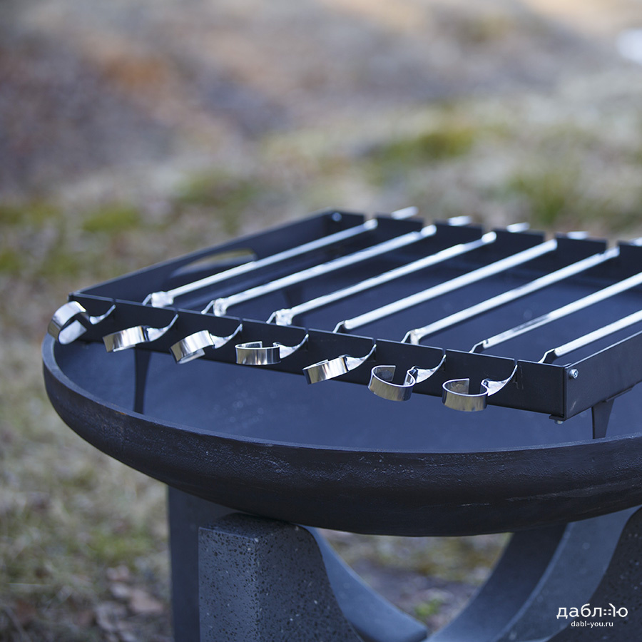 Шашлычный модуль Concretika. Шашлычный модуль для костровых чаш предназначен для приготовления шашлыка и других блюд на костровых чашах. Шашлычный модуль может использоваться как самостоятельно для приготовления мяса на шампурах, так для приготовления множества других блюд - для копчения, жарки рыбы на специальных решетках, а также для использования стандартных решеток для жарки рыбы и мяса.Шашлычница металлическая: 56х46,5х15 см