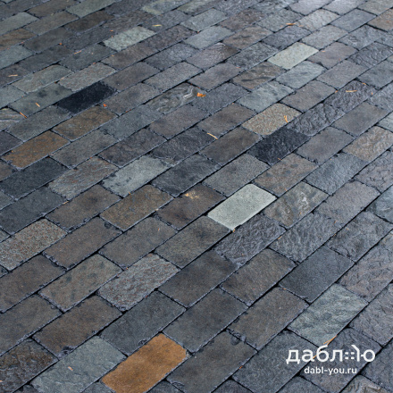 Шунгит серо-рыже-черный брусчатка галтованная 100x200x40-50 мм