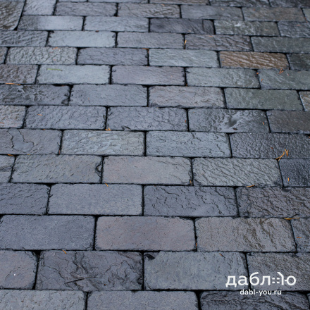 Шунгит серо-рыже-черный брусчатка галтованная размер 100x200, толщина 40-50 мм. Черная пестрая брусчатка из природного камня. Ввиду того, что поверхность брусчатки имеет рельефную фактуру - толщина брусчатки колеблется от 40 до 50 мм. Шунгит является одним из самых прочных камней среди аналогов, поэтому такую брусчатку можно использовать для мощения парковок и пешеходных зон.- Вес: 120 кг/м2
