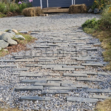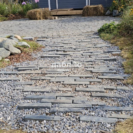 Шунгит серо-рыже-черный брусчатка пилено-галтованная 50x240x50 мм. Черная пестрая брусчатка из природного камня. Шунгит является одним из самых прочных камней среди аналогов, поэтому такую брусчатку можно использовать для мощения парковок и пешеходных зон.- Вес: 136 кг/м2