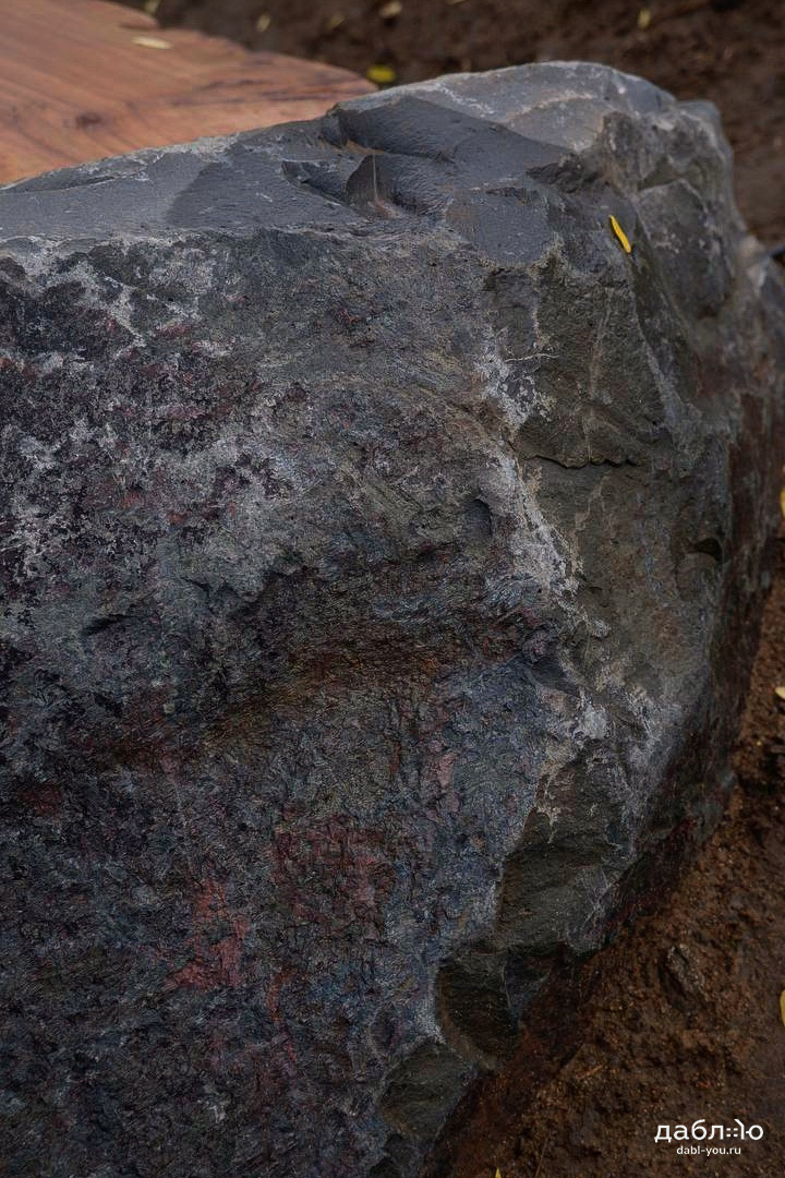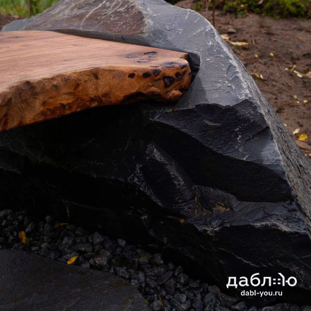 Скамейка из валунов №1. Скамья изготовлена из специально подобранного дерева и валунов под Ваши вкусы.
